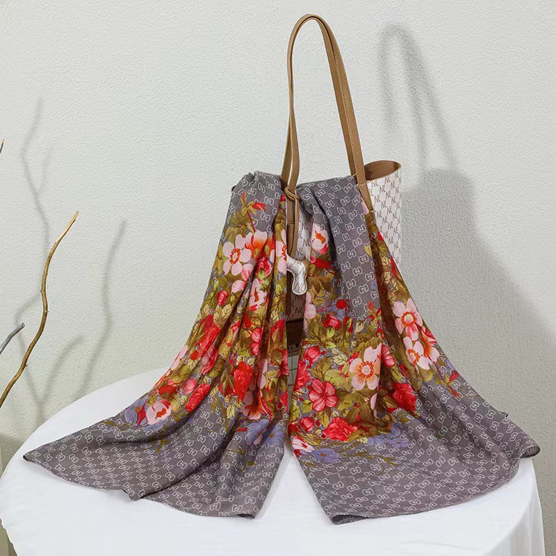 New Korean-style silk scarves for spring and summer, cotton and linen silk scarves, Xinjiang women's flower large square scarves, beach scarves, sun-protective shawls and scarves
