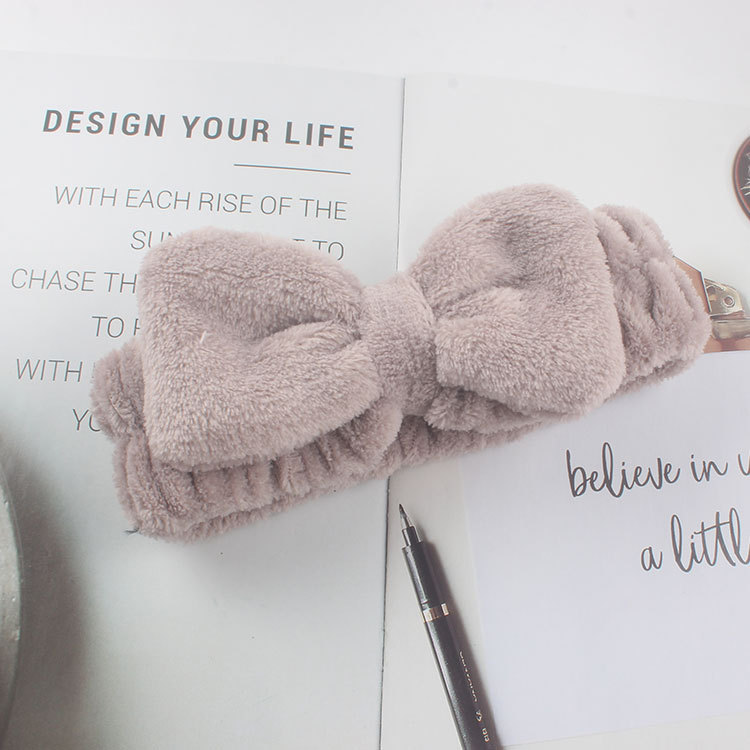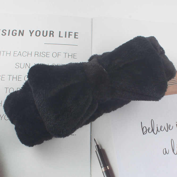 New Korean-style student girl's light plate bow, cute face wash and hair tie, plush makeup, mask application and hair pressure band
