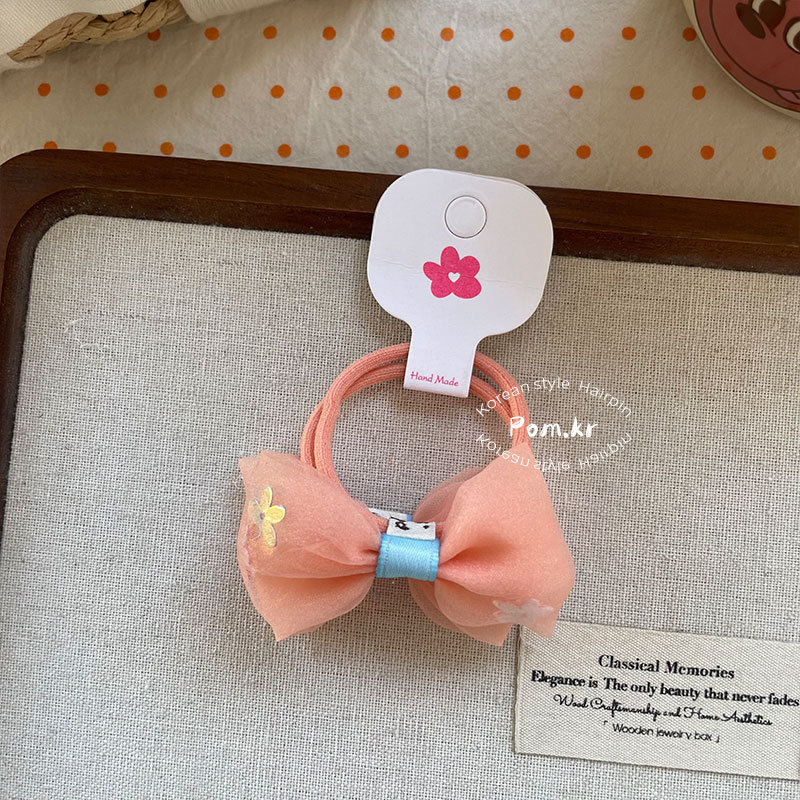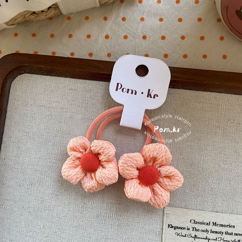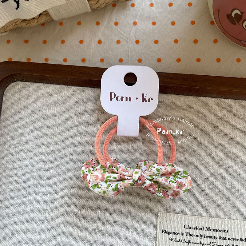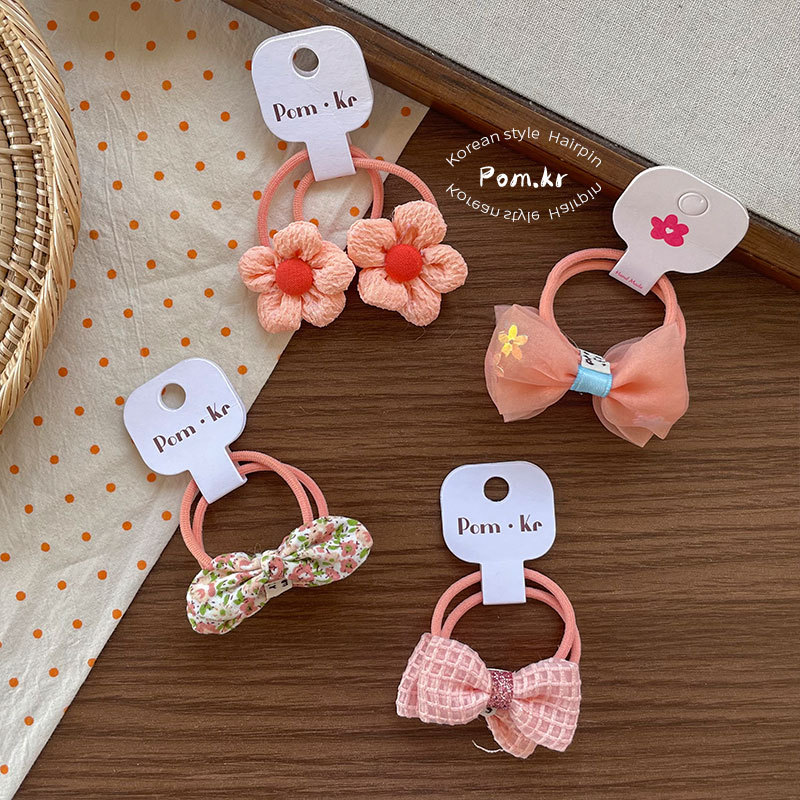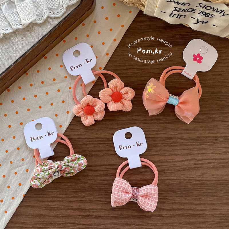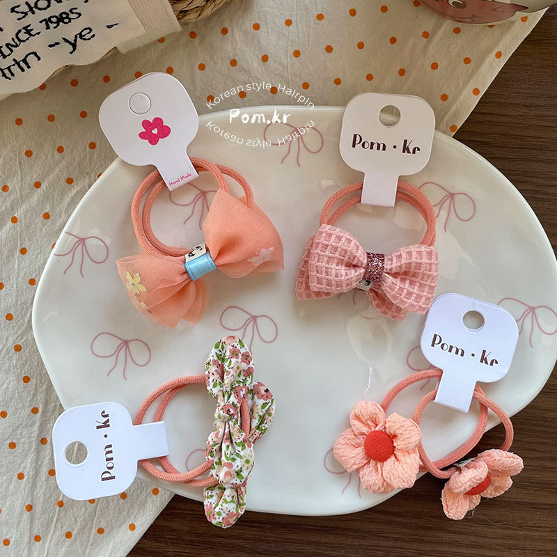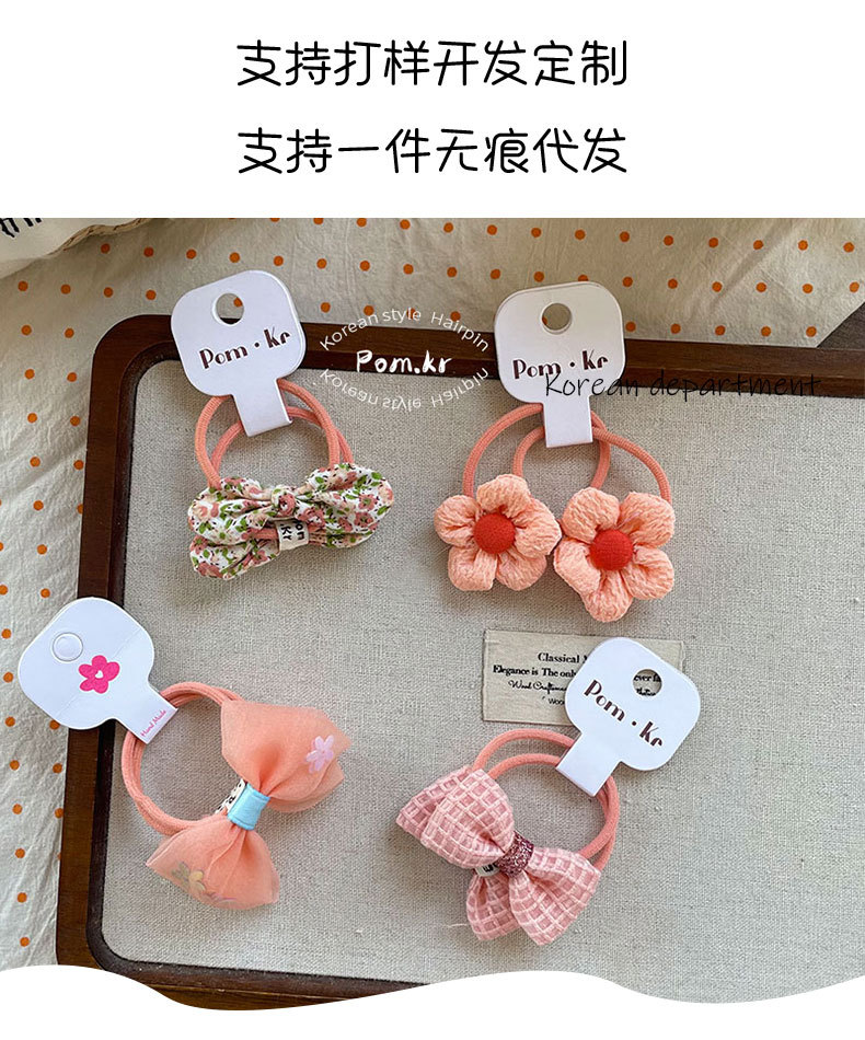 New Korean-style sweet bow flower hair band children's fabric matching high-elasticity ponytail leather band floral hair accessory