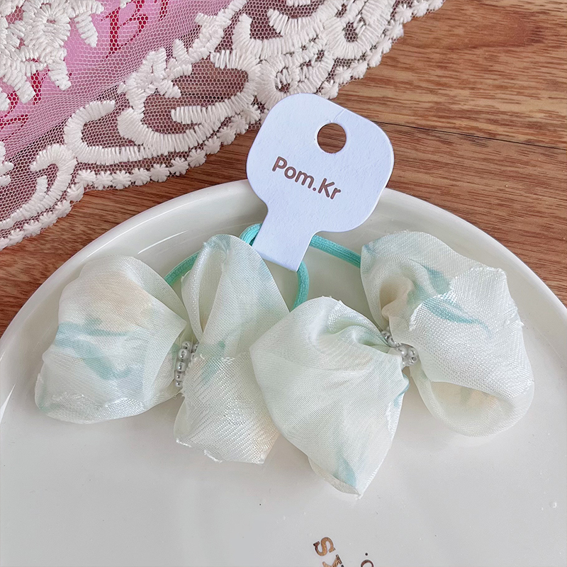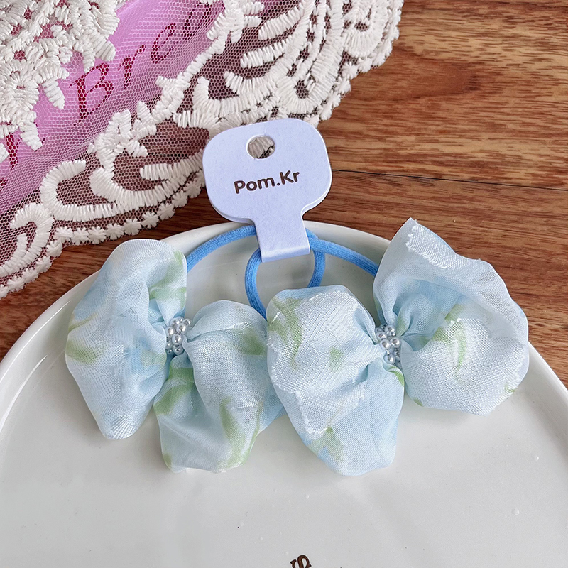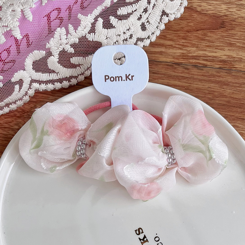 New Korean-style sweet bow hair tie, floral pearl fabric hair tie, high-elasticity and versatile hair tie