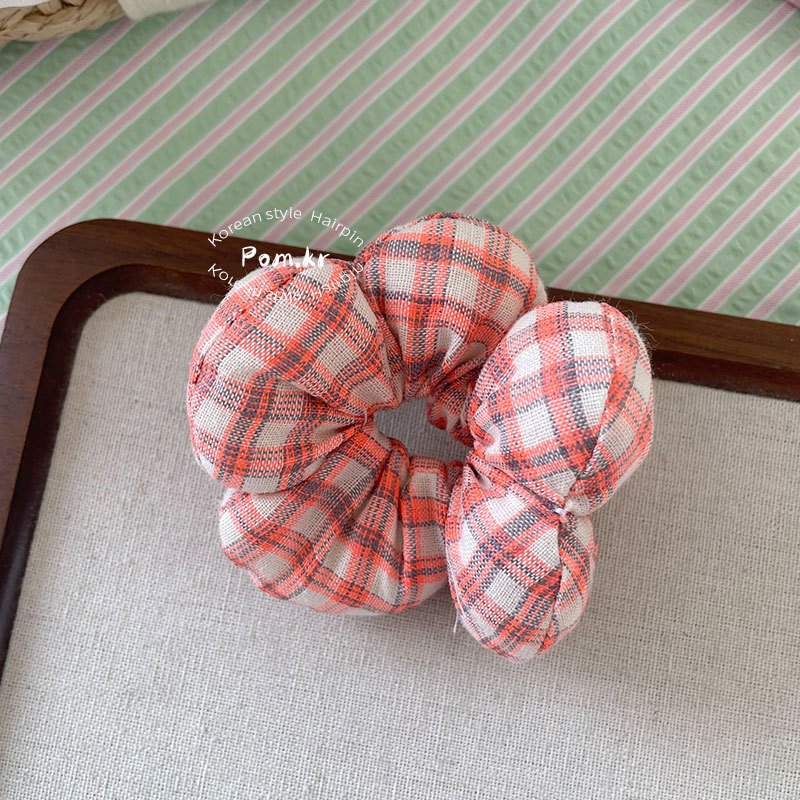 New Korean-style sweet children's hair band, fabric checkered flower-filled cotton bun hair rope, small leather band hair accessory for women