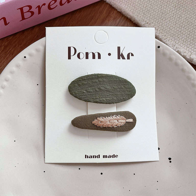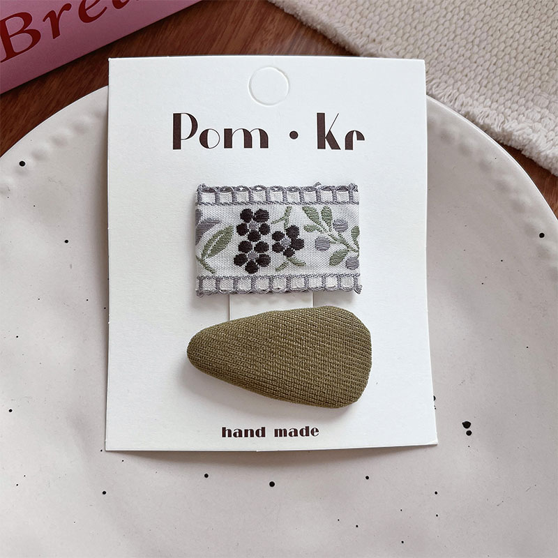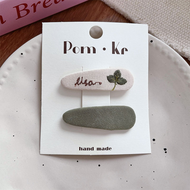 New Korean-style sweet fabric hair clips and hairpins with simple embroidery, versatile children's broken hair clips, bangs clips and side clips