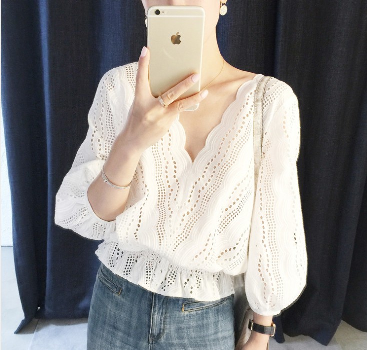 New Korean-style water-soluble fashionable short-sleeved embroidered top