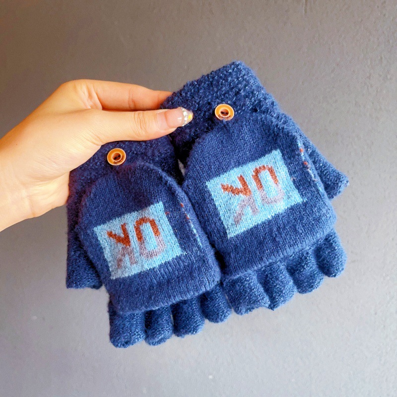 New Korean-style winter gloves, warm, cold-proof and frost-proof men's simple outdoor cycling half-finger flip cover writing gloves