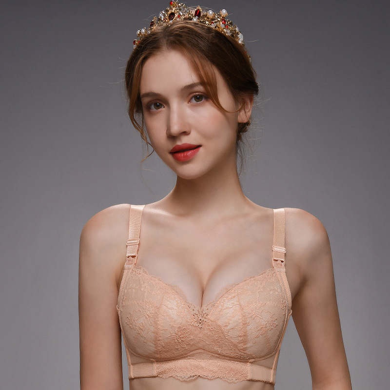 New lace pure cotton inner cup open-button lactation bra, comfortable, breathable, gathering and adjustable bra for pregnant women
