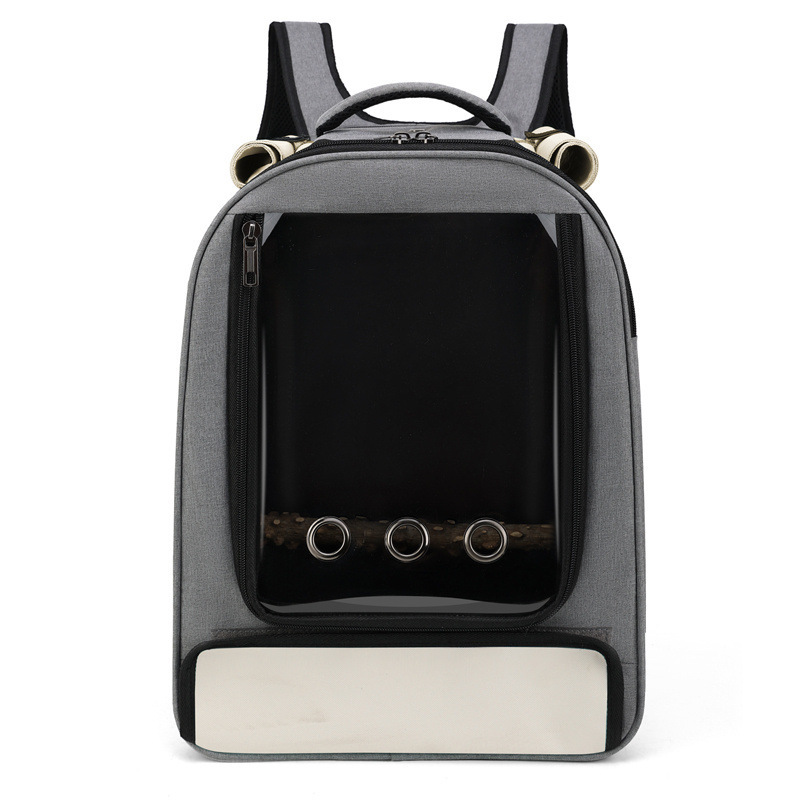 New large-space, breathable and transparent pet backpack, double-shoulder bird backpack, portable cat bag with wooden standing stick bird bag