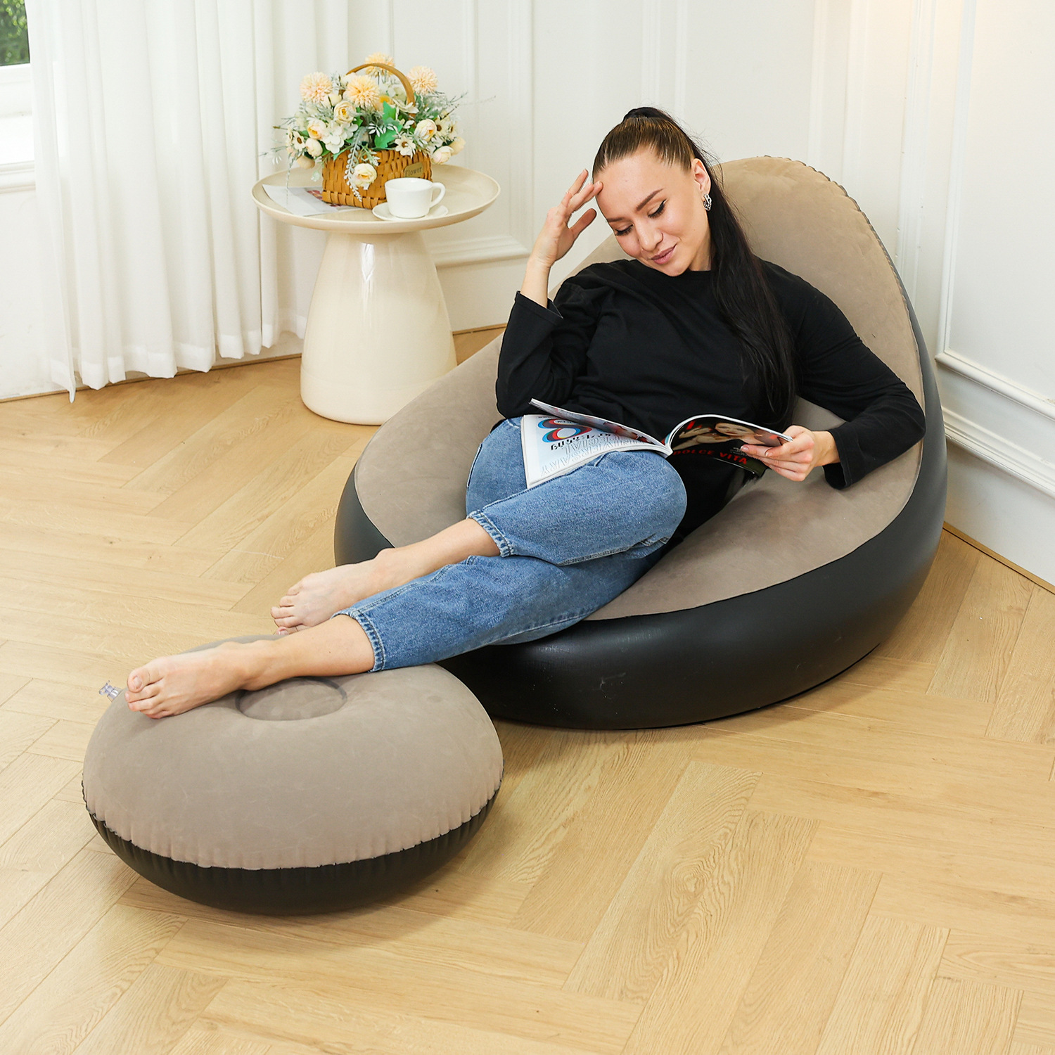 New lazy person inflatable sofa, outdoor folding lounge chair with footrests, comfortable combination plush leisure sofa bed