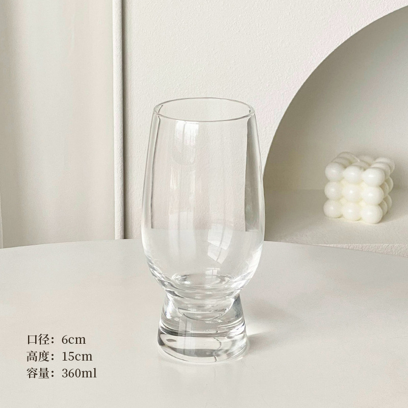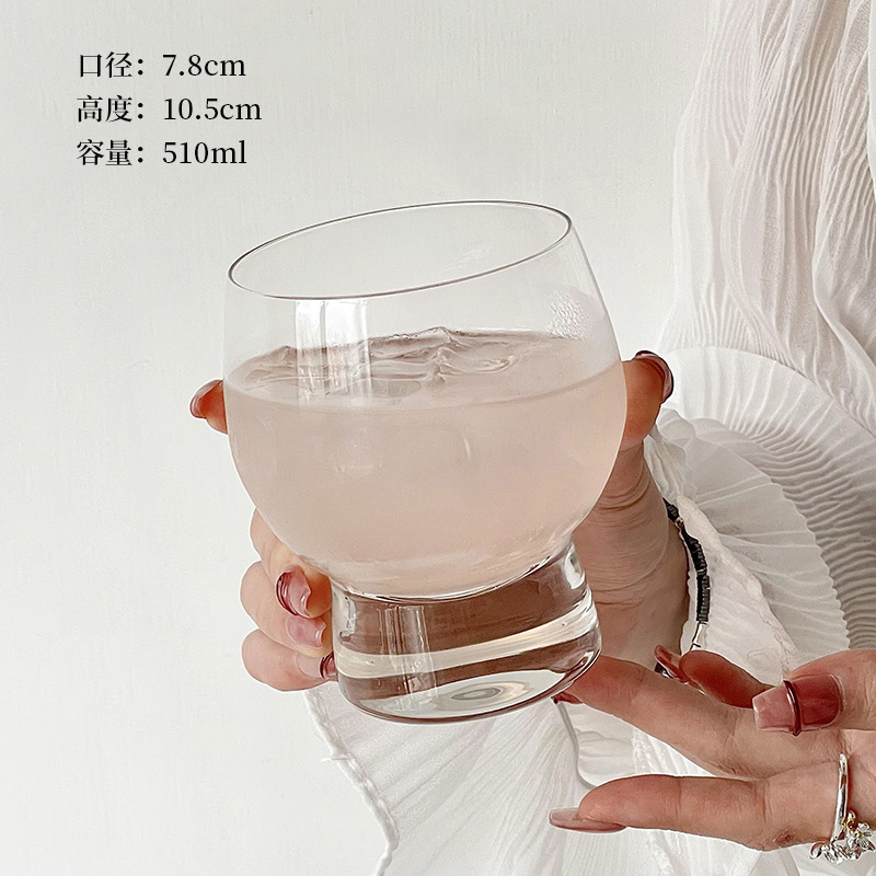 New luxury high-platform transparent drum cup, niche design glass cup, whisky glass, cold drink juice coffee cup