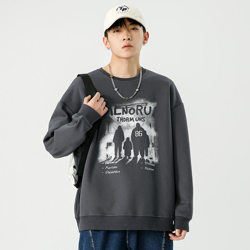 New men's long-sleeved T-shirt for warm spring and autumn, a trendy men's brand with a loose cotton base layer