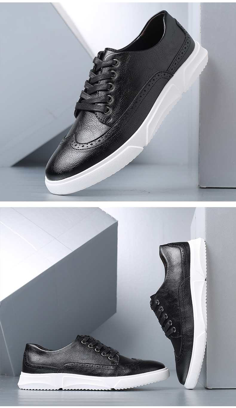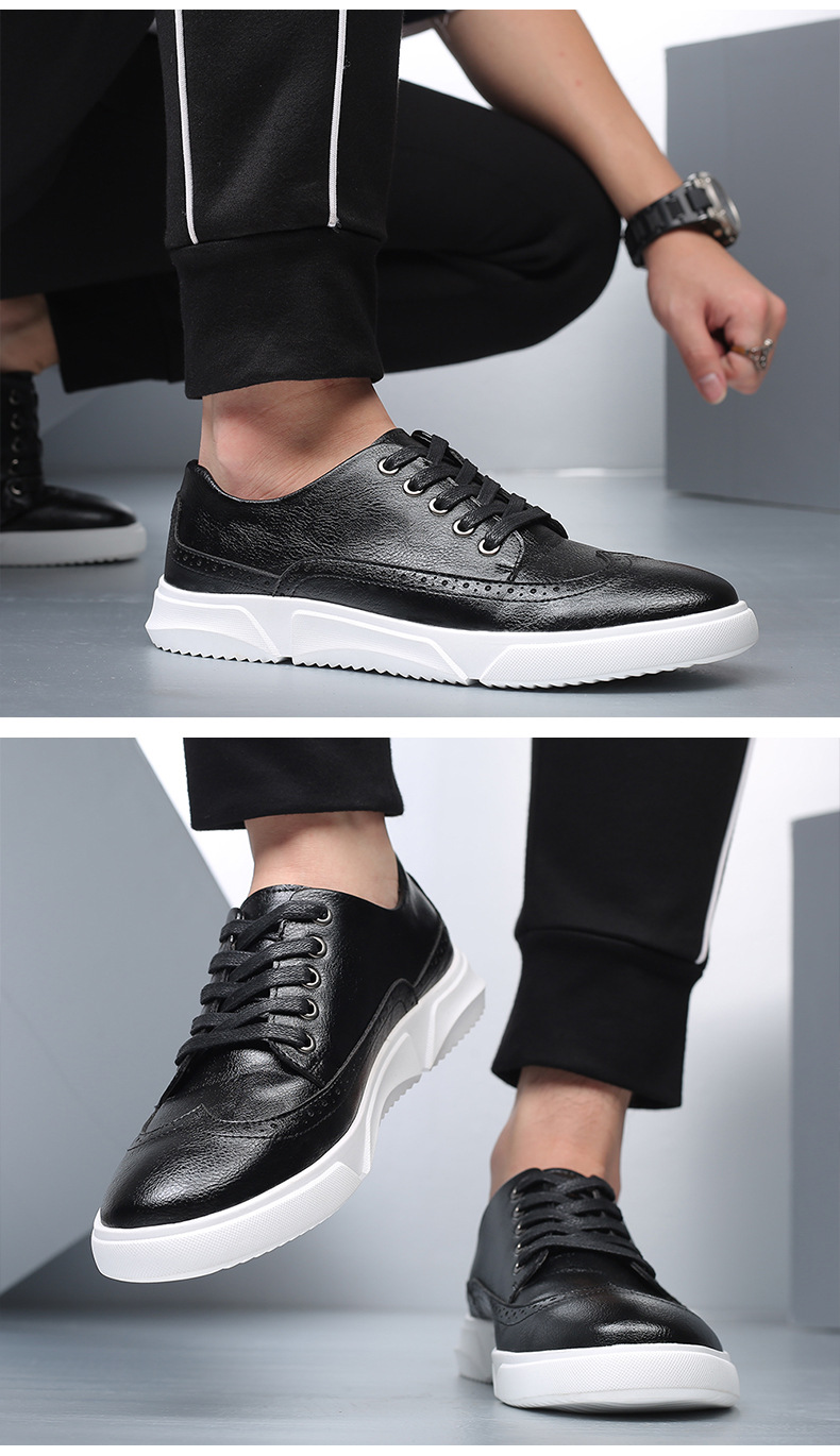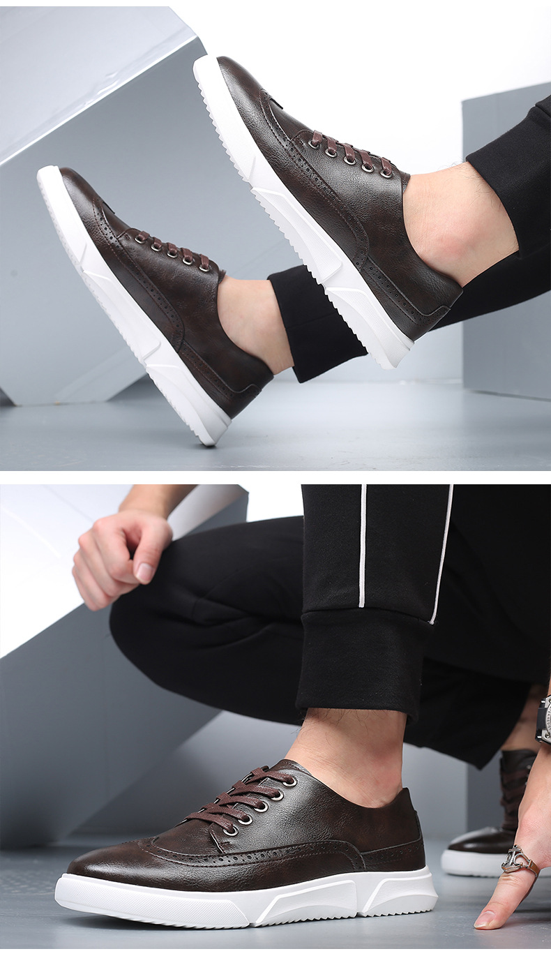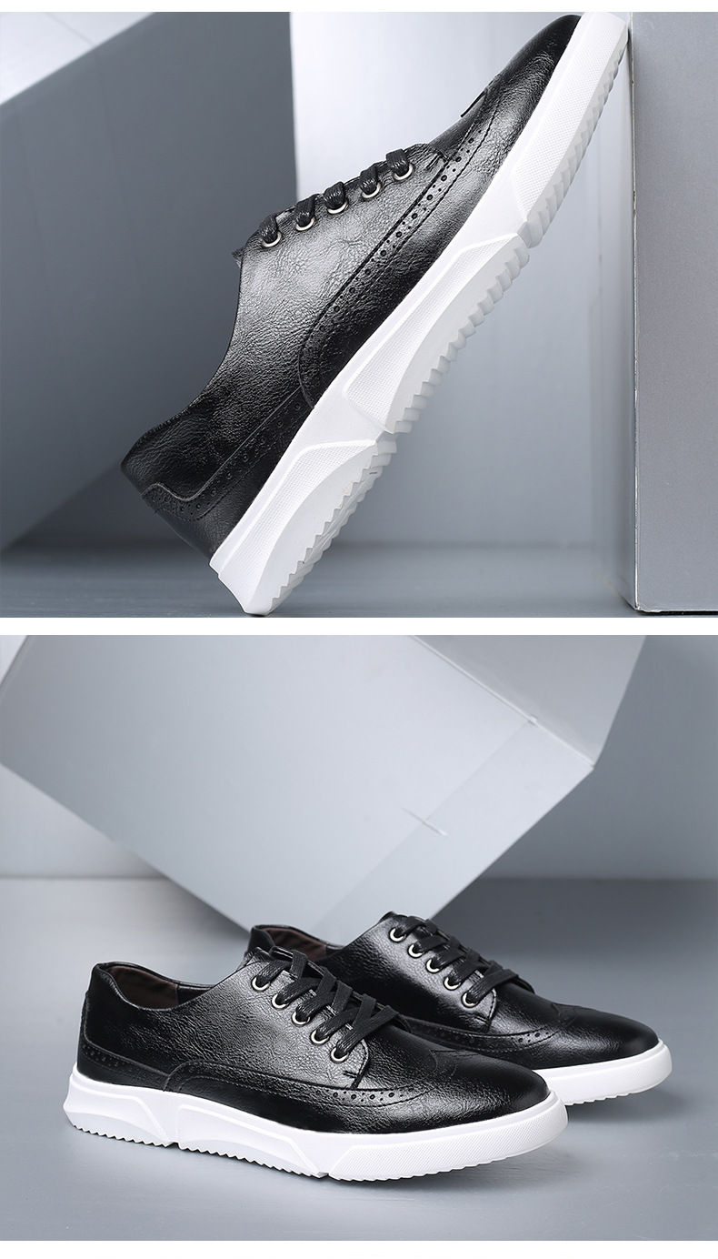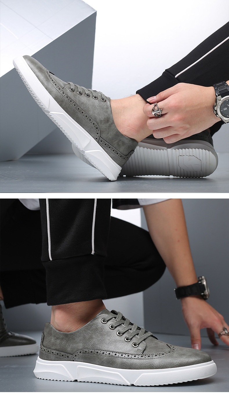 New men's plus-size casual shoes, fashionable Korean-style British board shoes, lace-up brogue retro single shoes for men