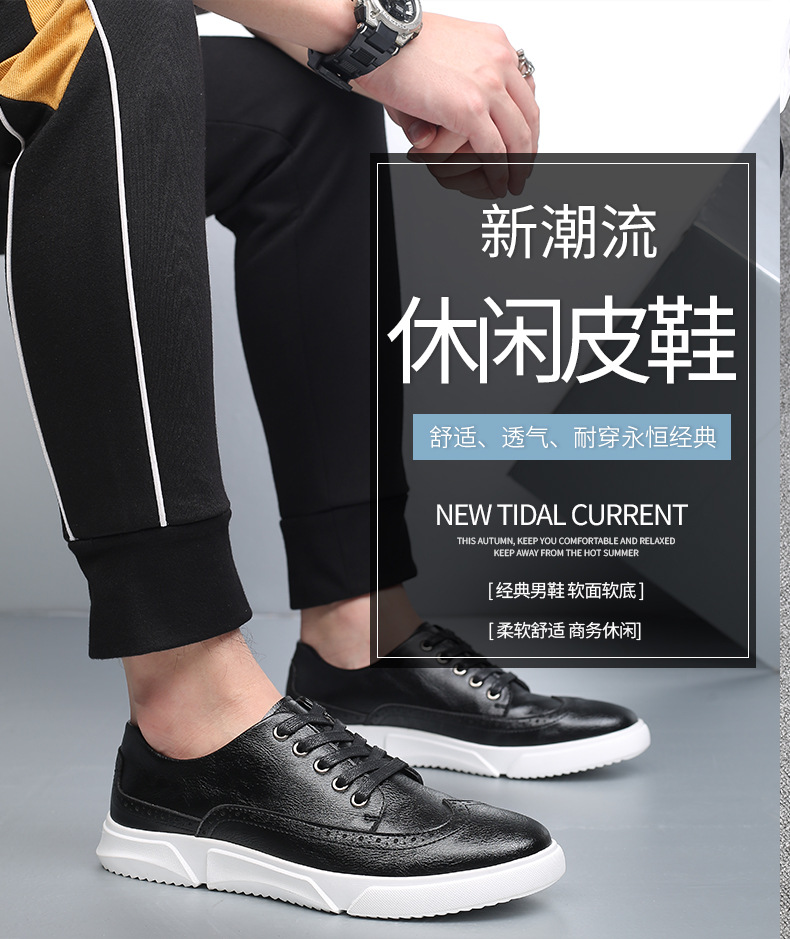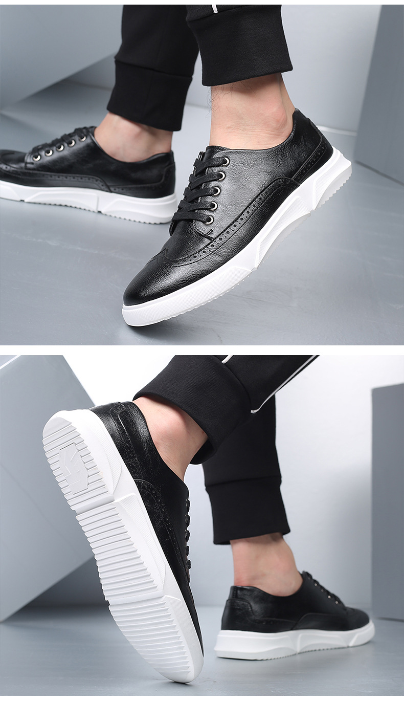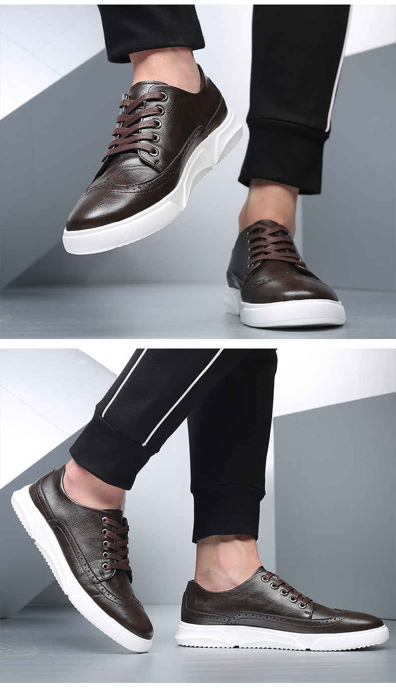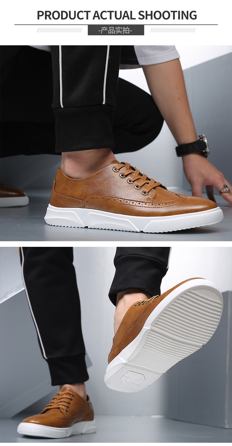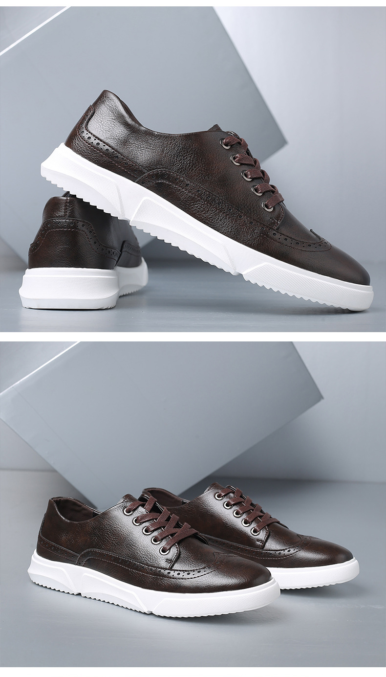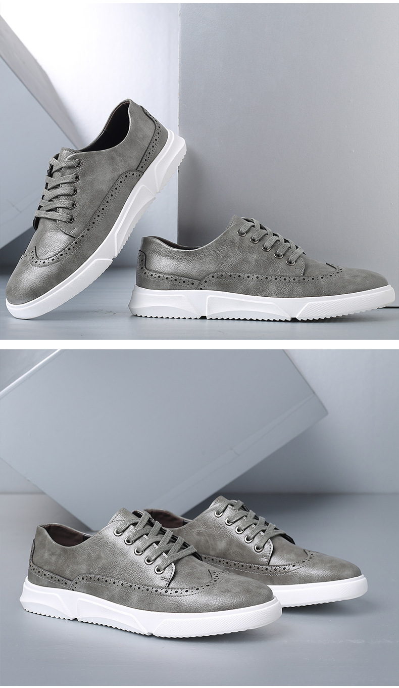New men's plus-size casual shoes, fashionable Korean-style British board shoes, lace-up brogue retro single shoes for men
