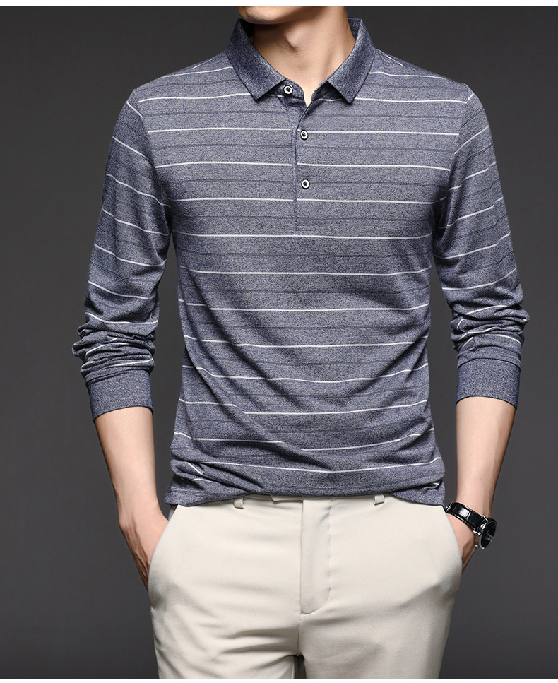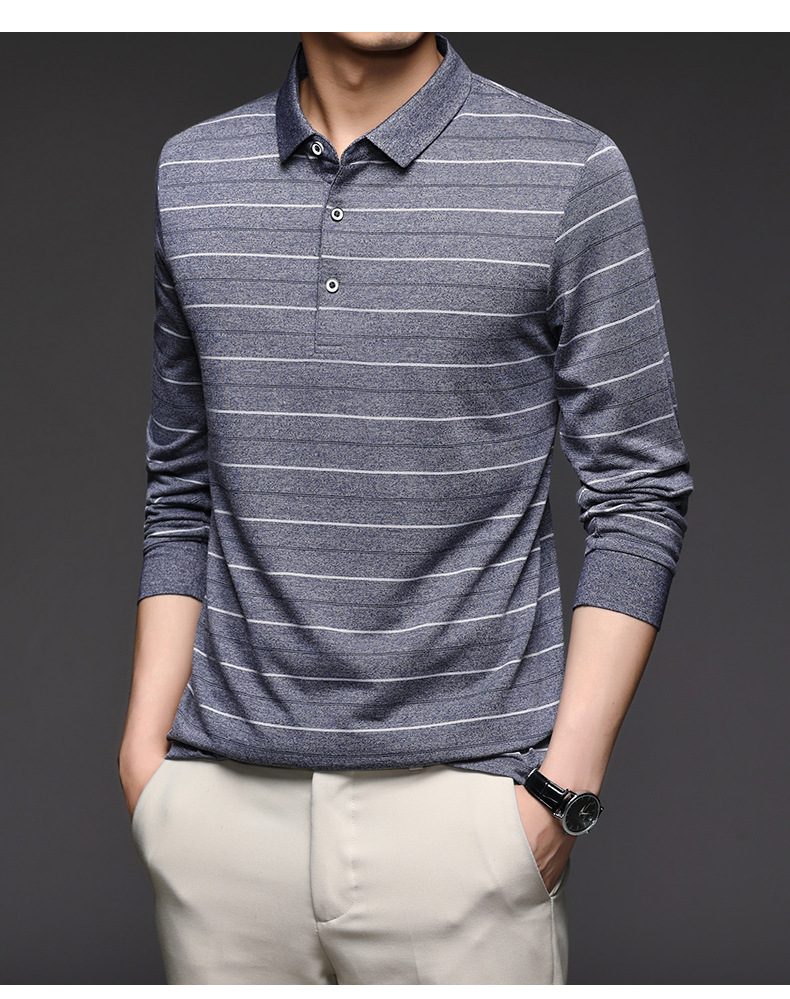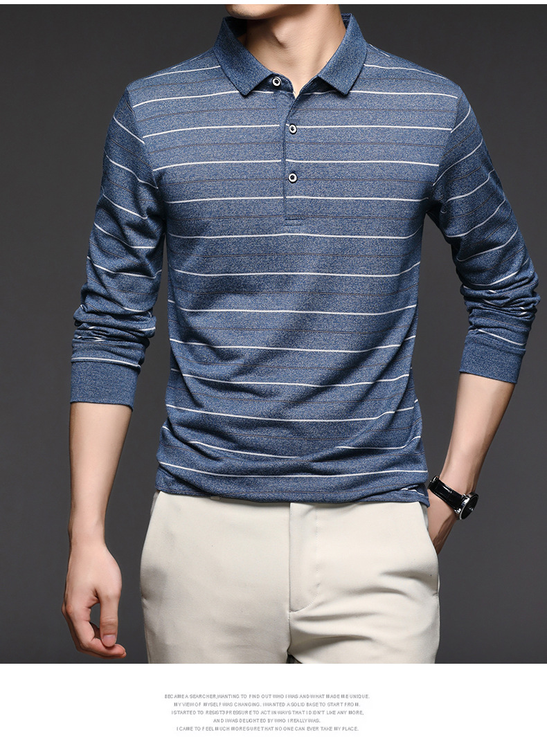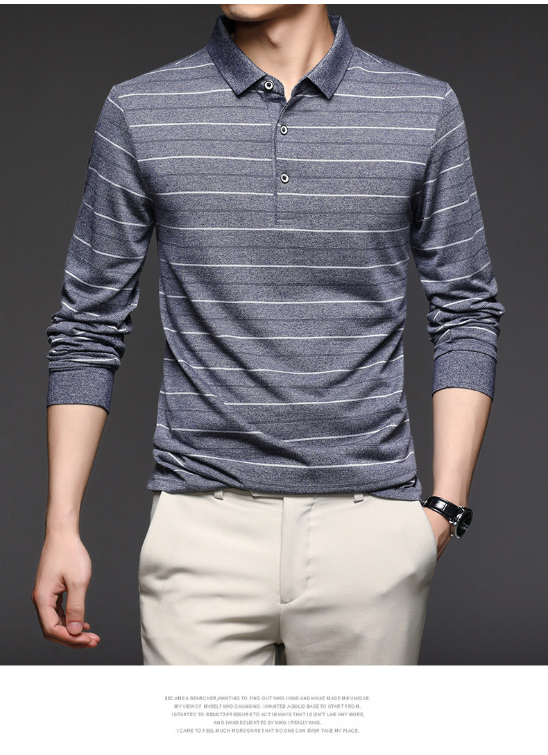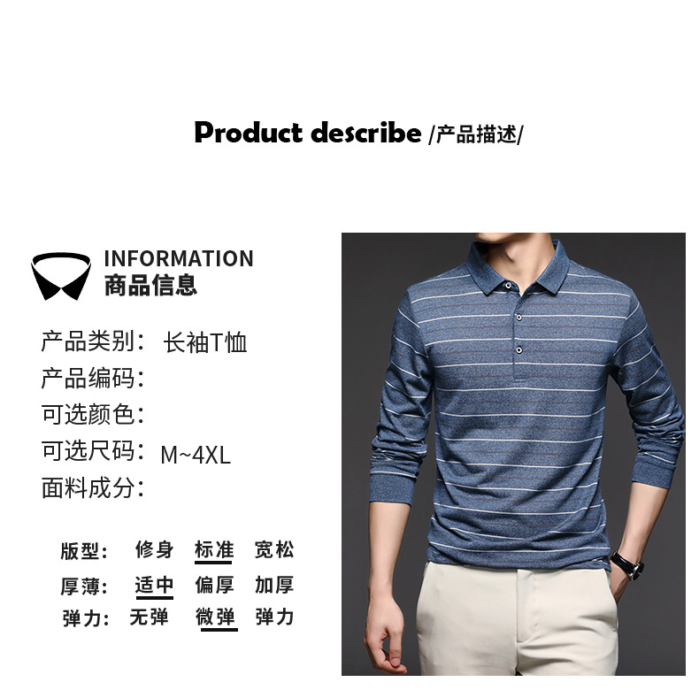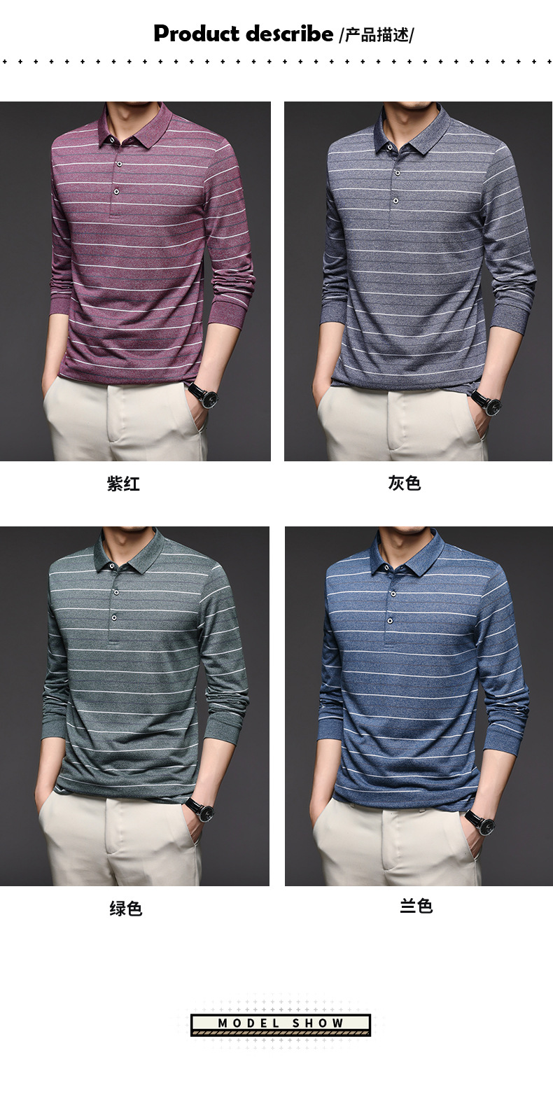 New men's POLO shirts for autumn casual wear, long-sleeved shirts for middle-aged and young men, lapel striped base layer, one-piece delivery