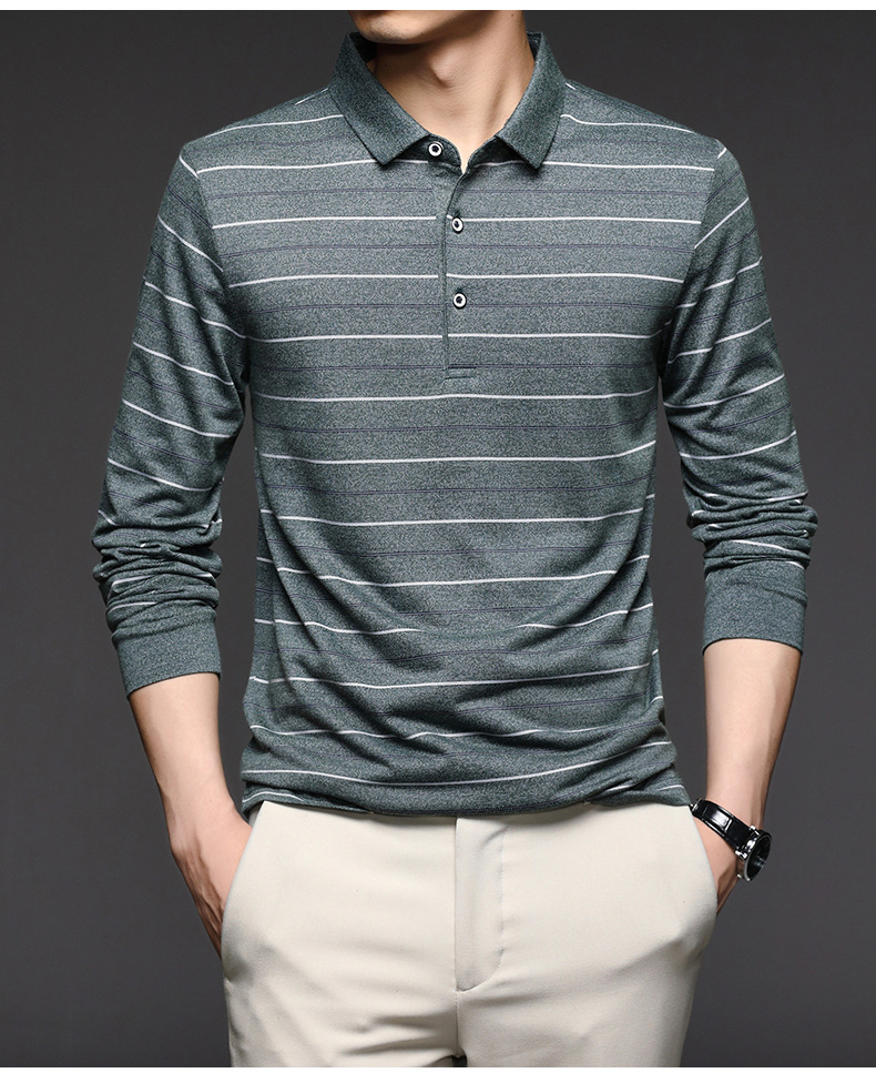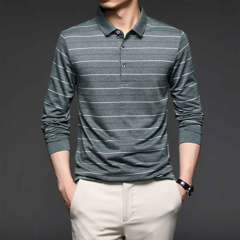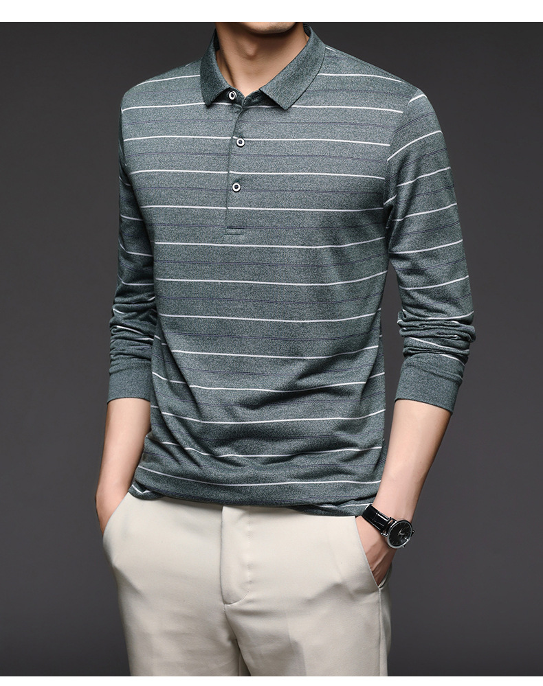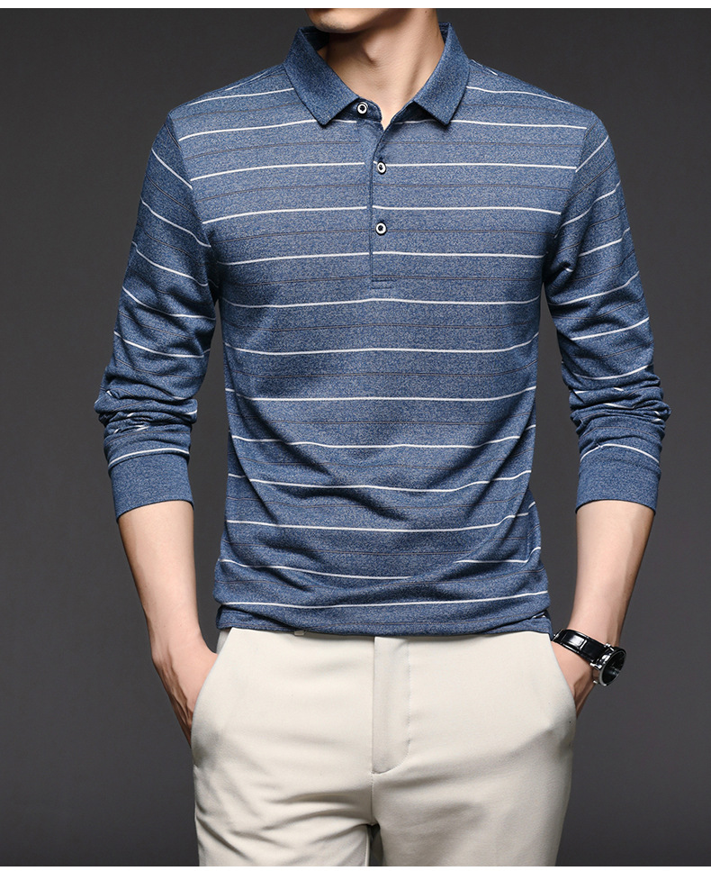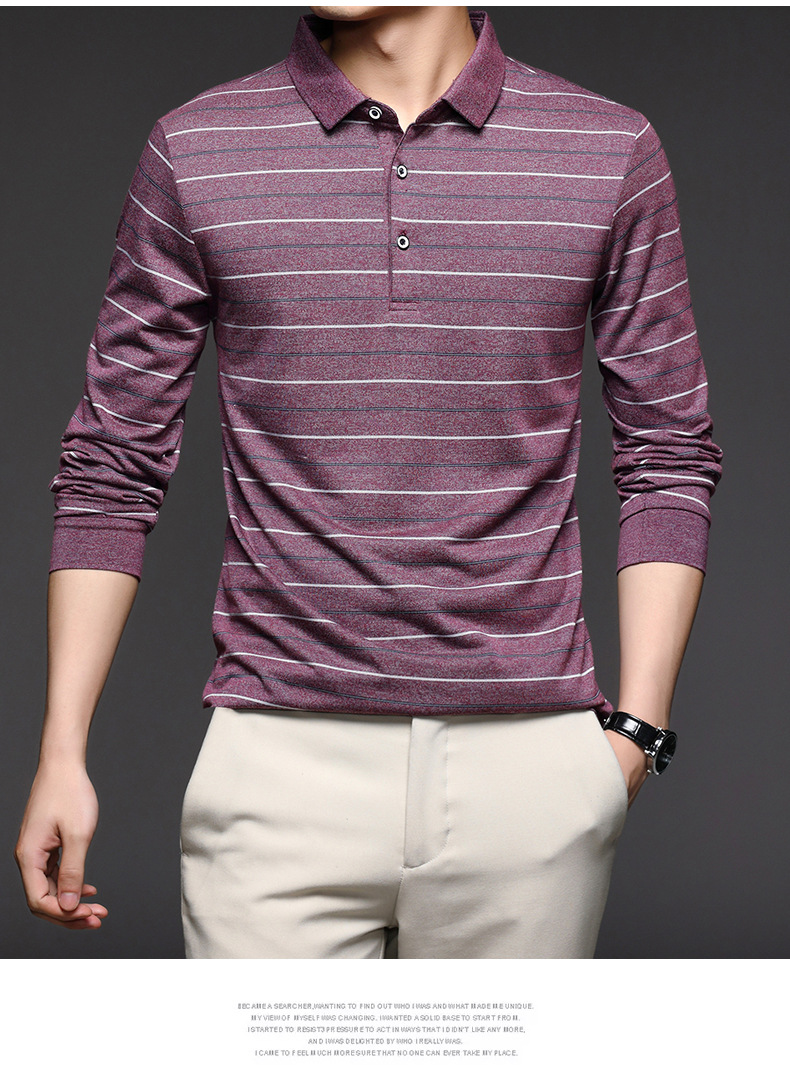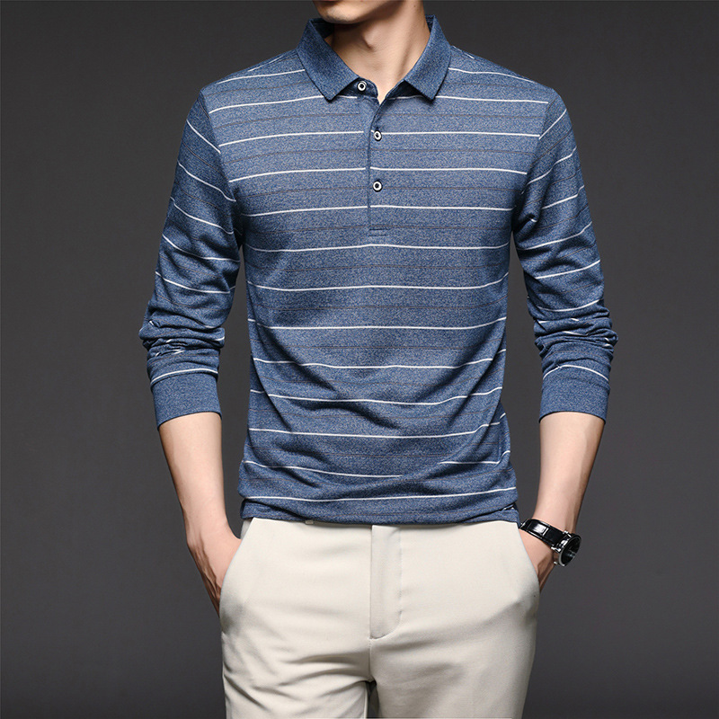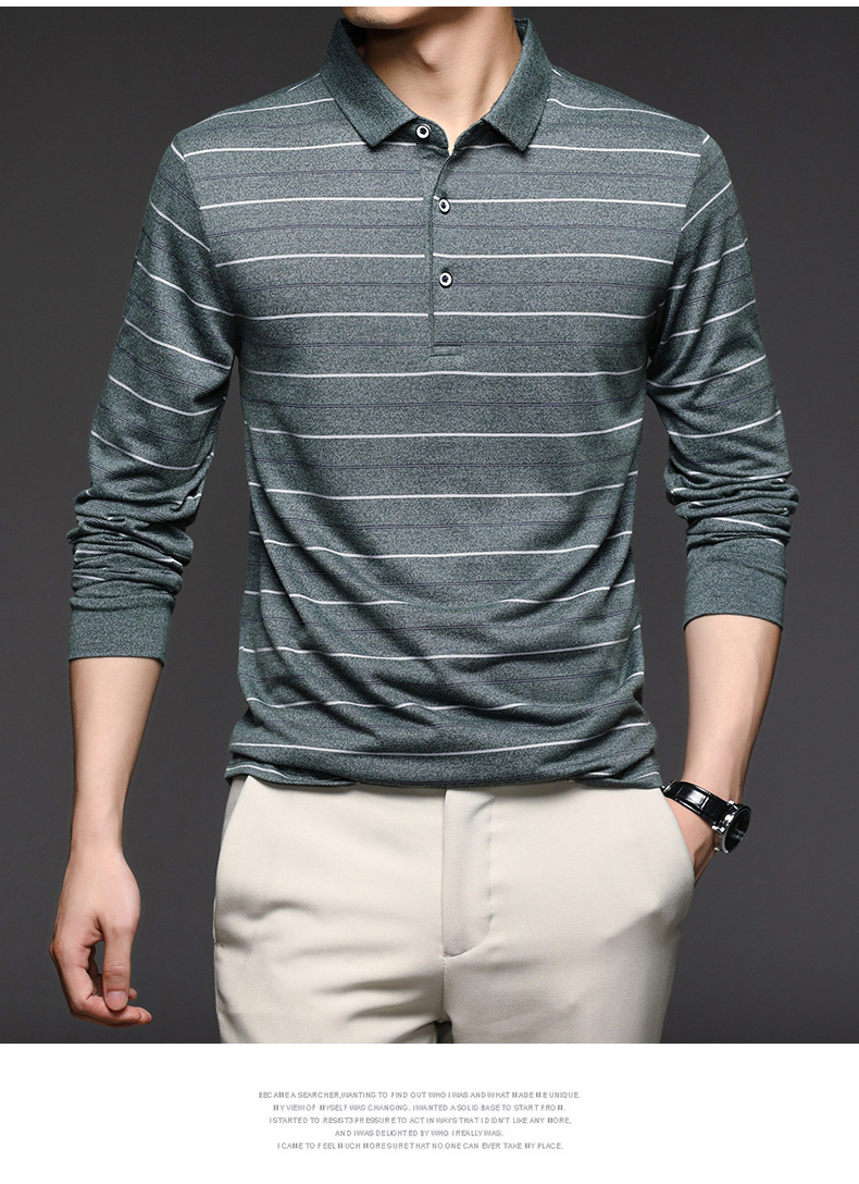 New men's POLO shirts for autumn casual wear, long-sleeved shirts for middle-aged and young men, lapel striped base layer, one-piece delivery