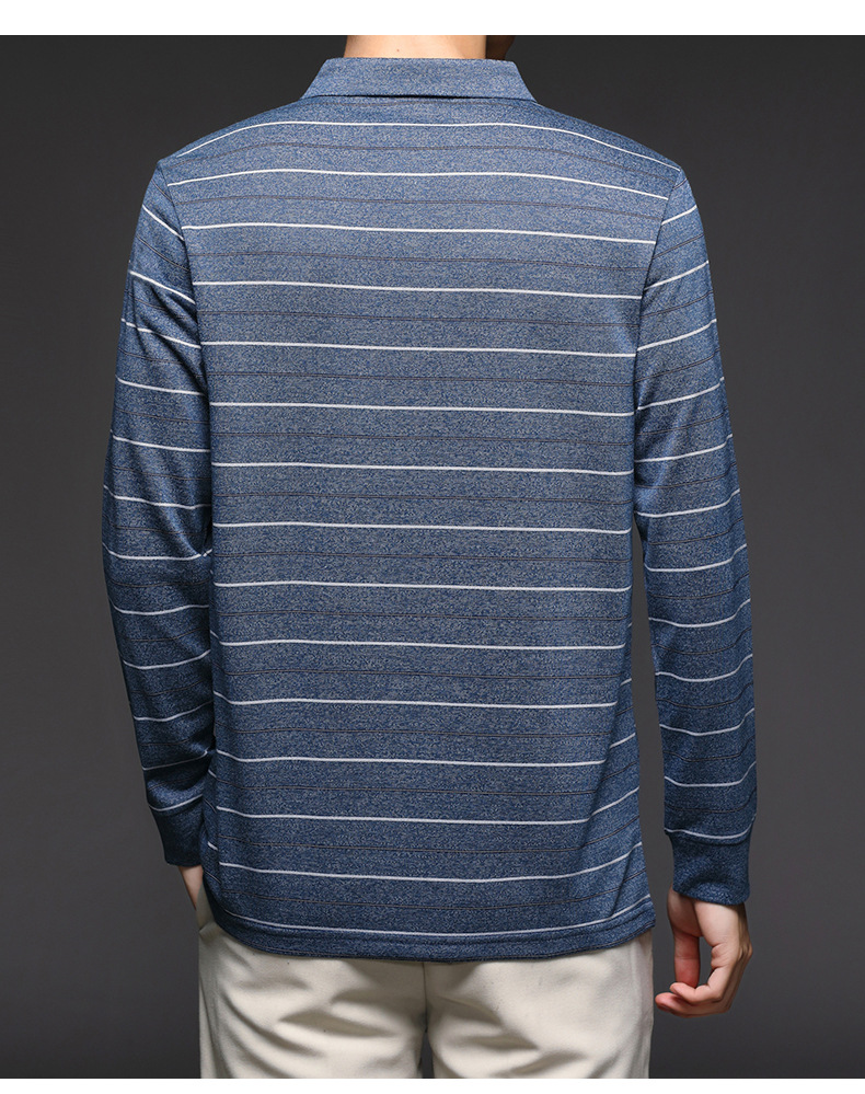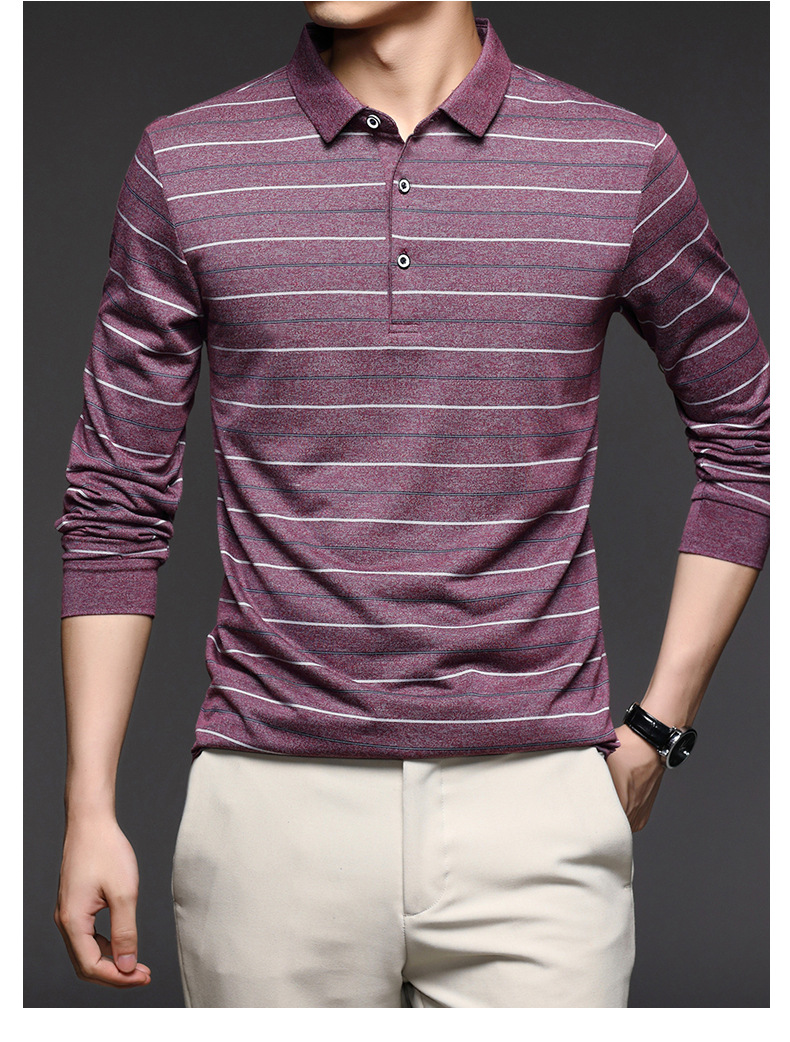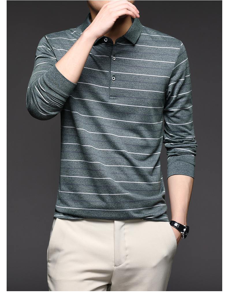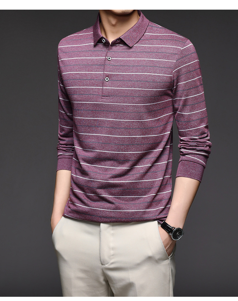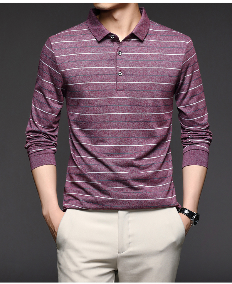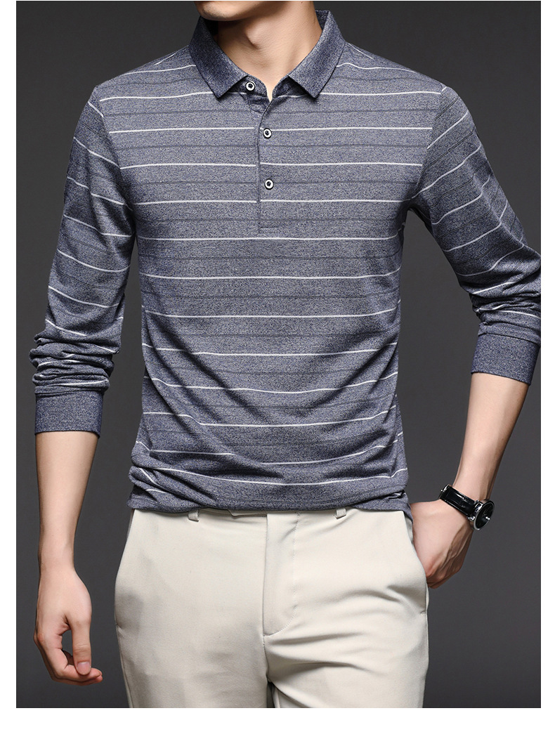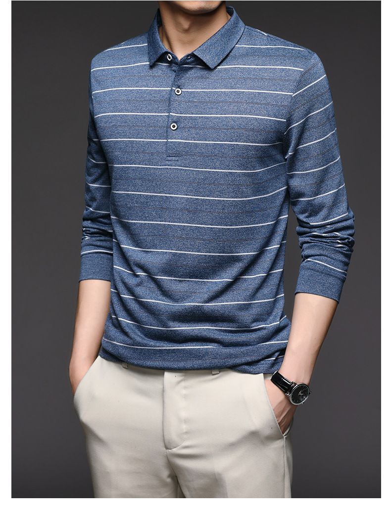 New men's POLO shirts for autumn casual wear, long-sleeved shirts for middle-aged and young men, lapel striped base layer, one-piece delivery
