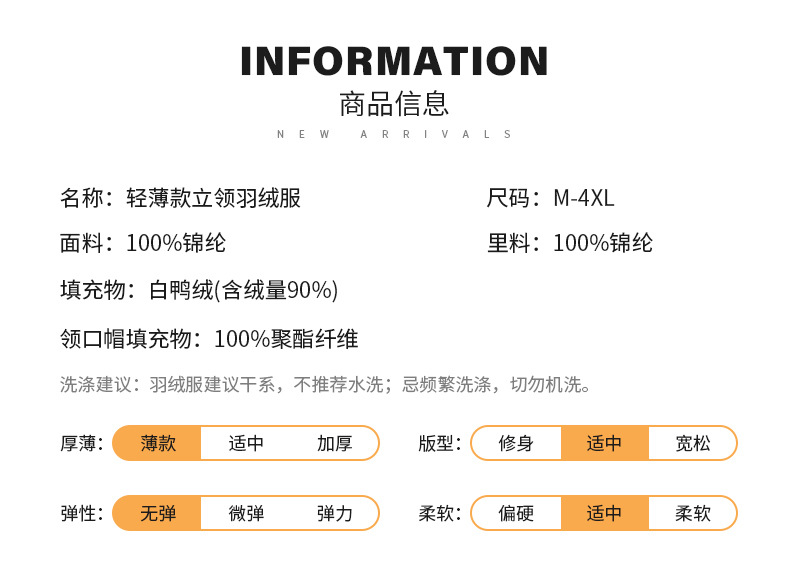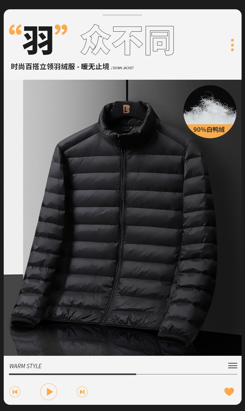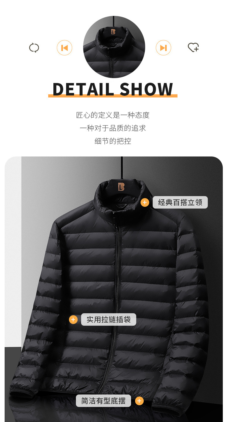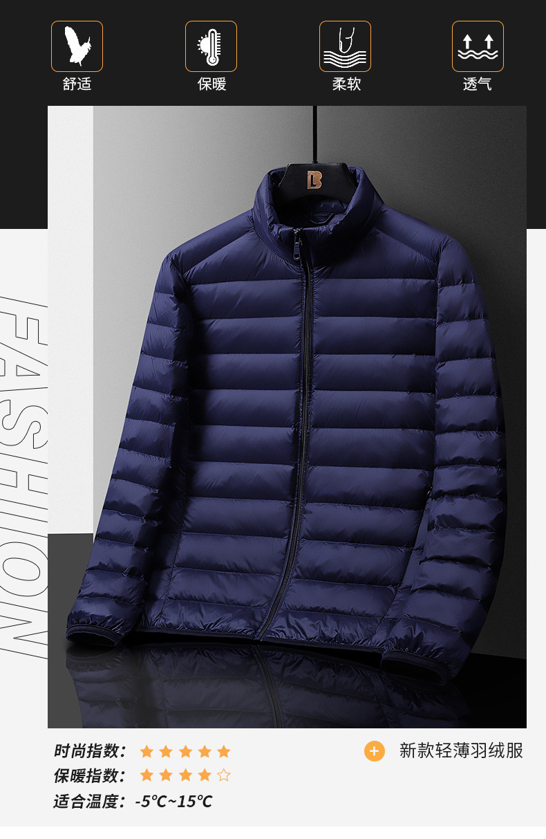 New men's winter business light and thin 90 white duck down stand-up collar, warm, casual and light for daily wear