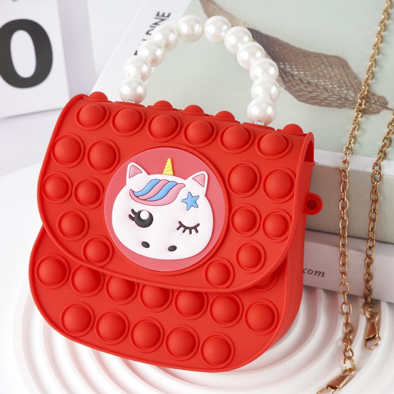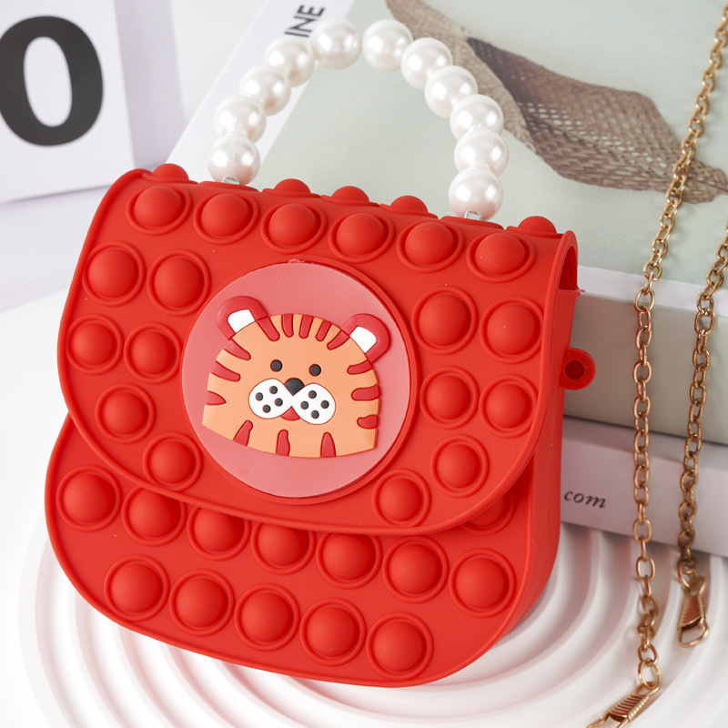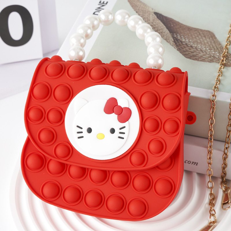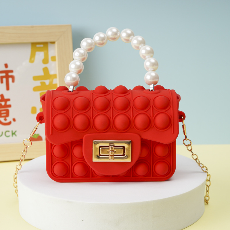 Large red square buckle pearl hand-held