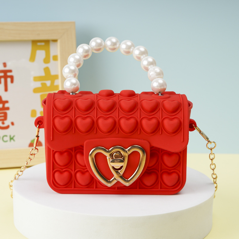 Heart-shaped buckle, rose red pearl hand-held