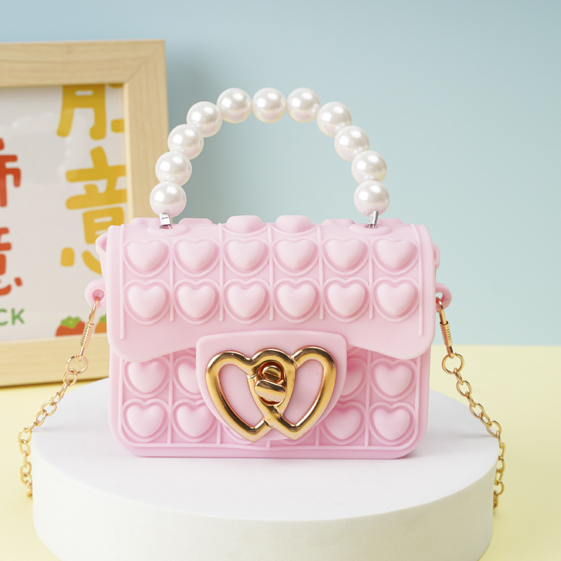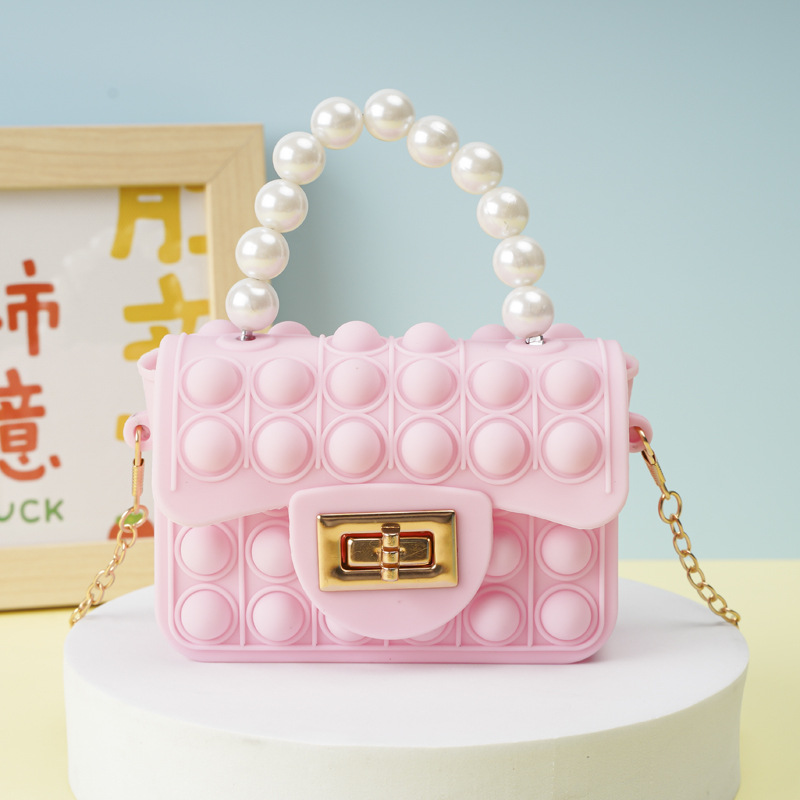 Pink square buckle pearl hand-held