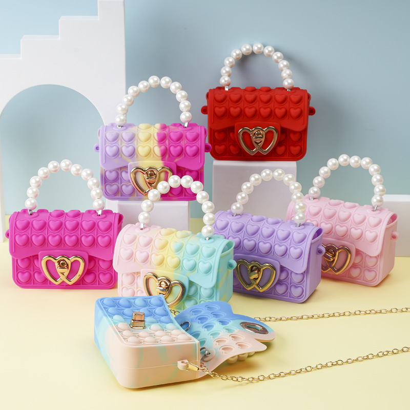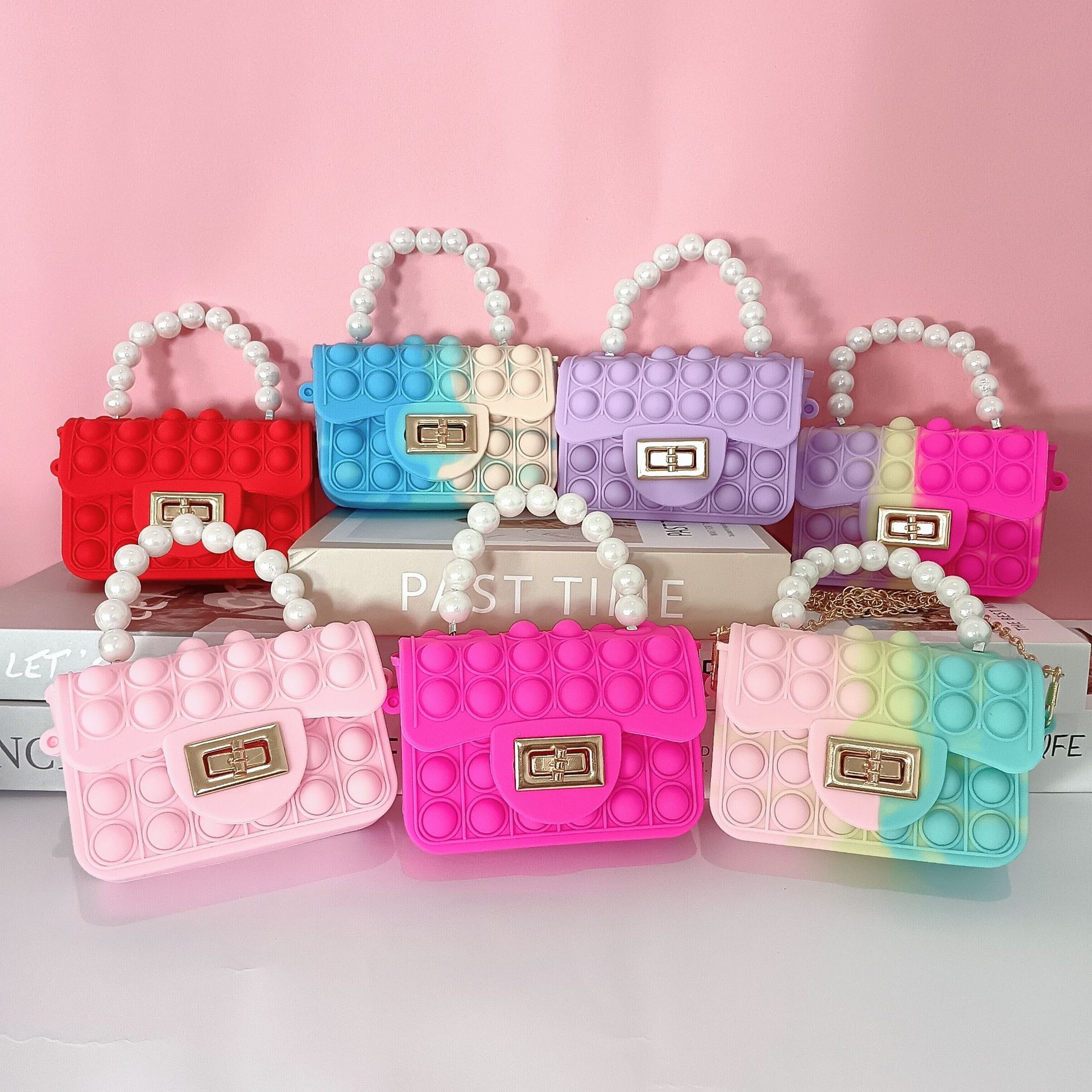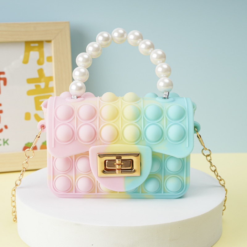 Pink mixed-color square buckle pearl hand-held