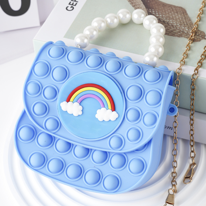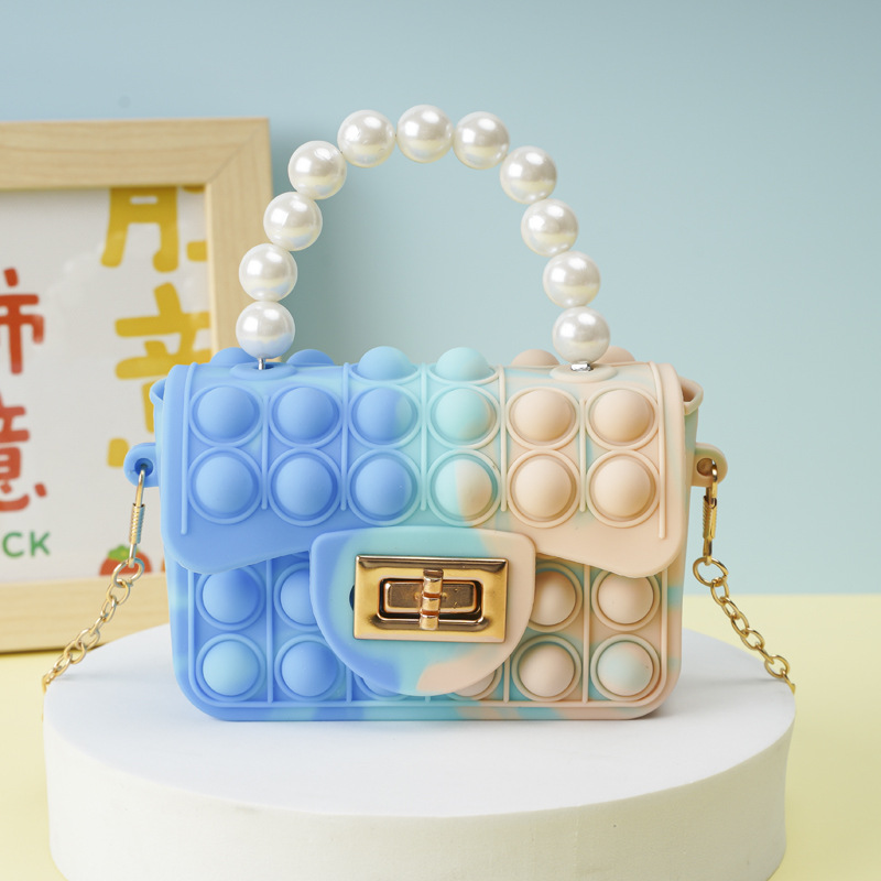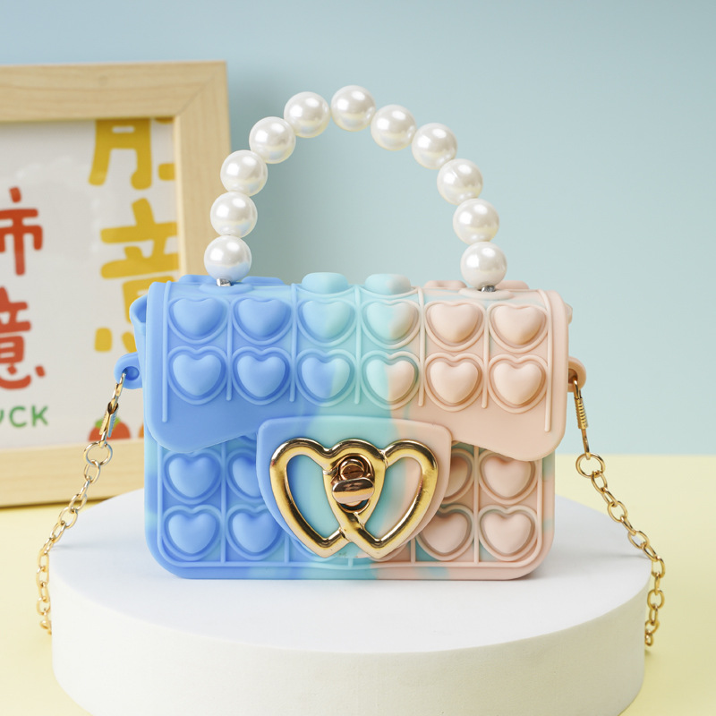 Blue mixed-color square buckle pearl hand-held