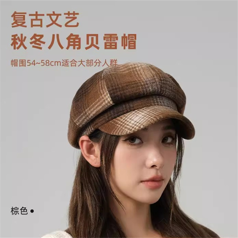 New mixed-color duck-tongued beret for women, autumn and winter newsboy cap, Korean-style octagonal cap, big head collar to show off face, little painter cap