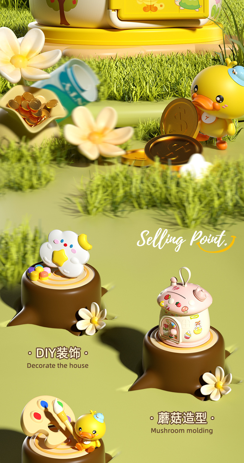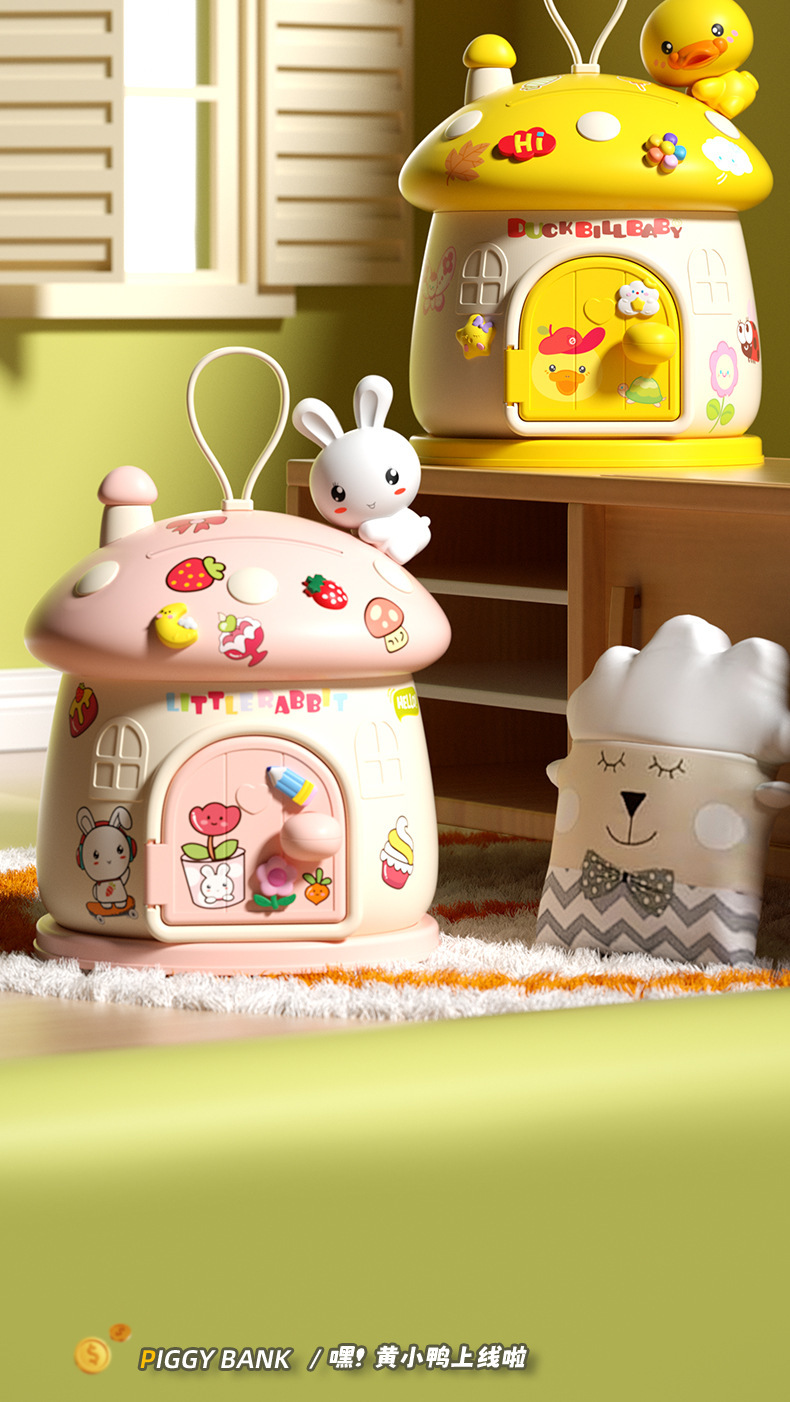 New mushroom House piggy bank diy stickers play house toys for boys and girls, New Year's and Christmas gifts