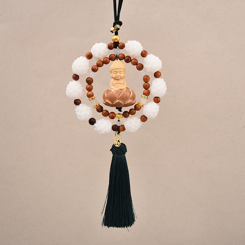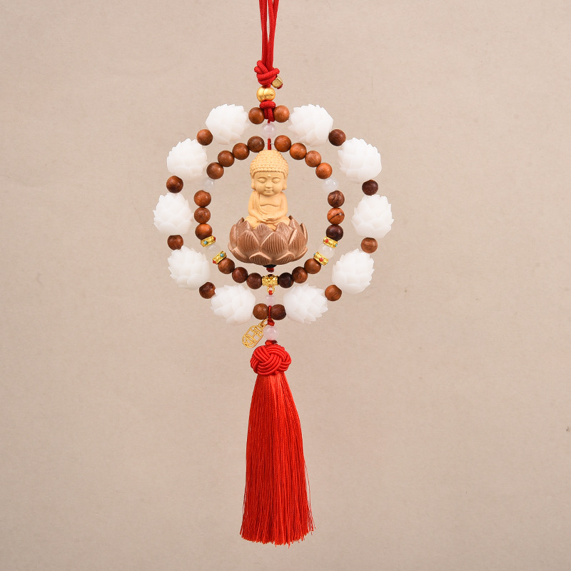 New national trend Bodhi Lotus car pendant woven double-loop Peace Little Buddha car rearview mirror pendant made of boxwood