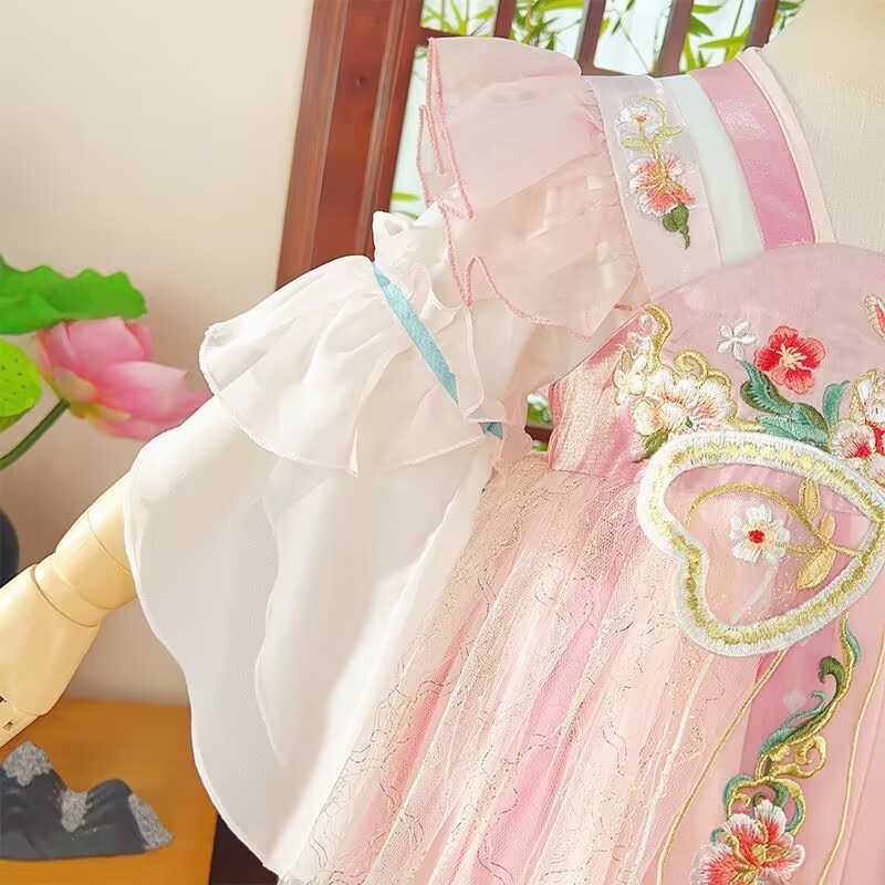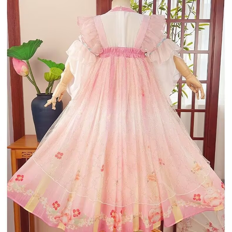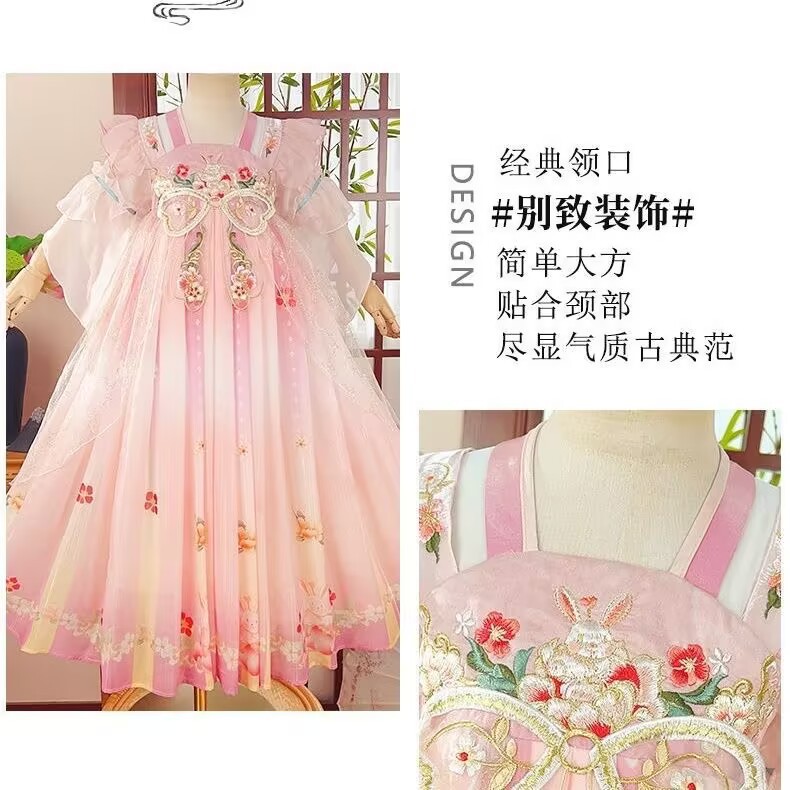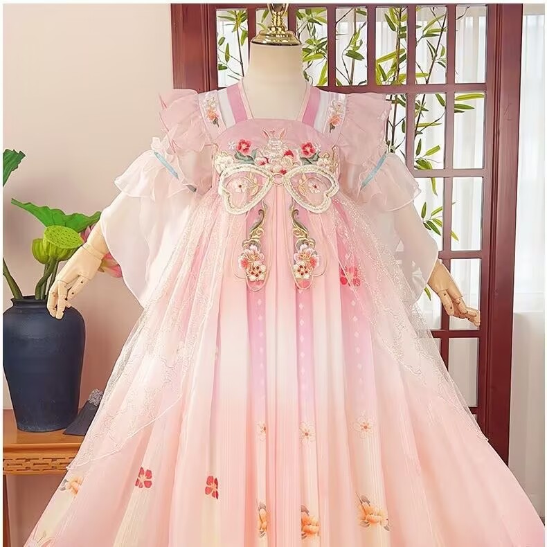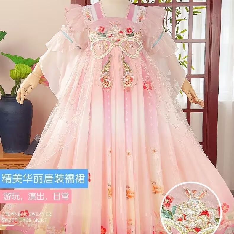 New national trend Hanfu girls' summer blouse and skirt, ancient Chinese style super fairy dress, children's ancient style Tang dress summer style