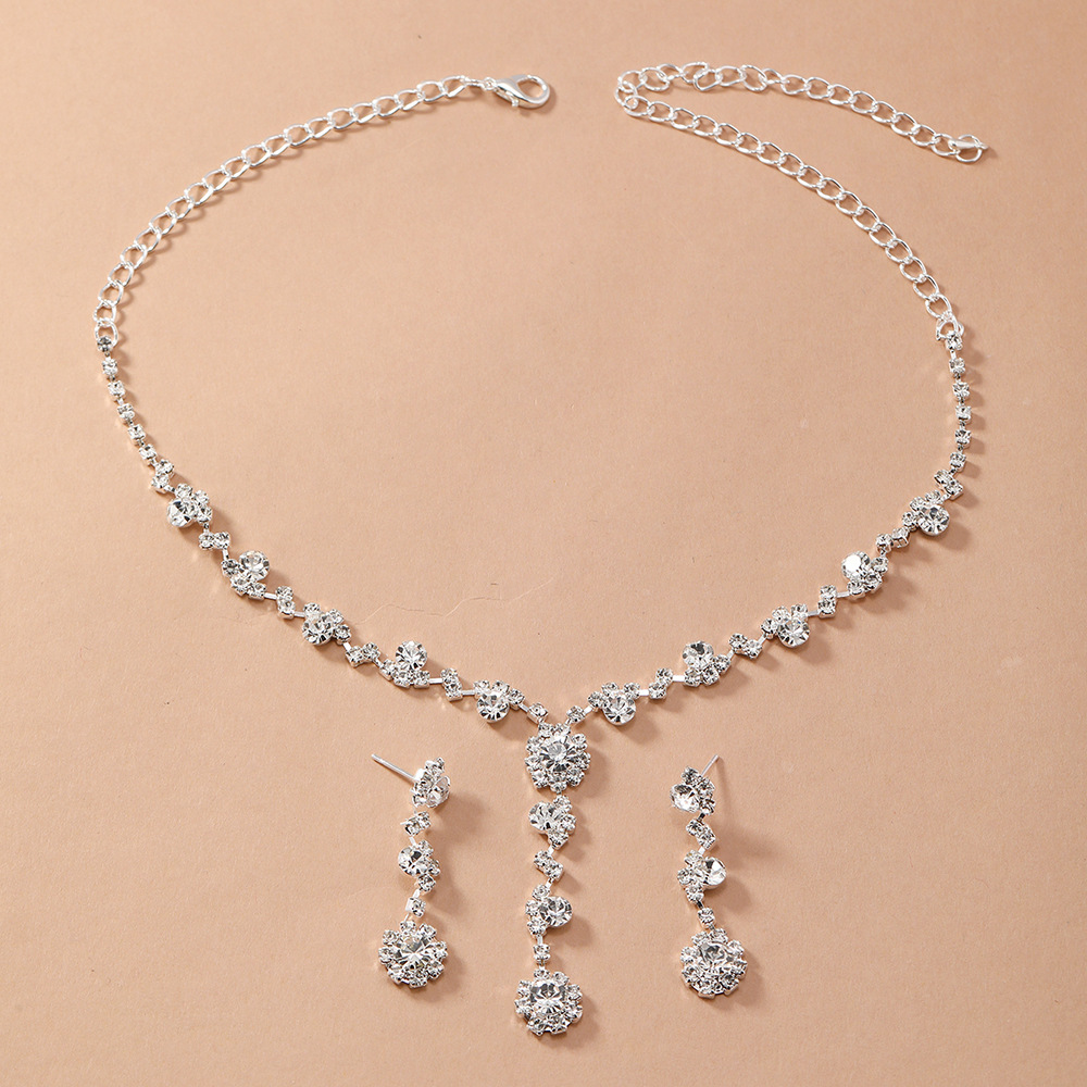 New necklace and earring set, European and American style water diamond collarbone bride accessory chain, diamond-encrusted banquet party set chain and earrings