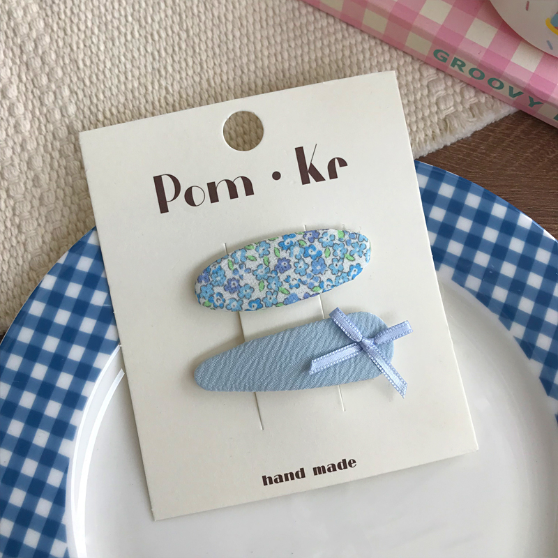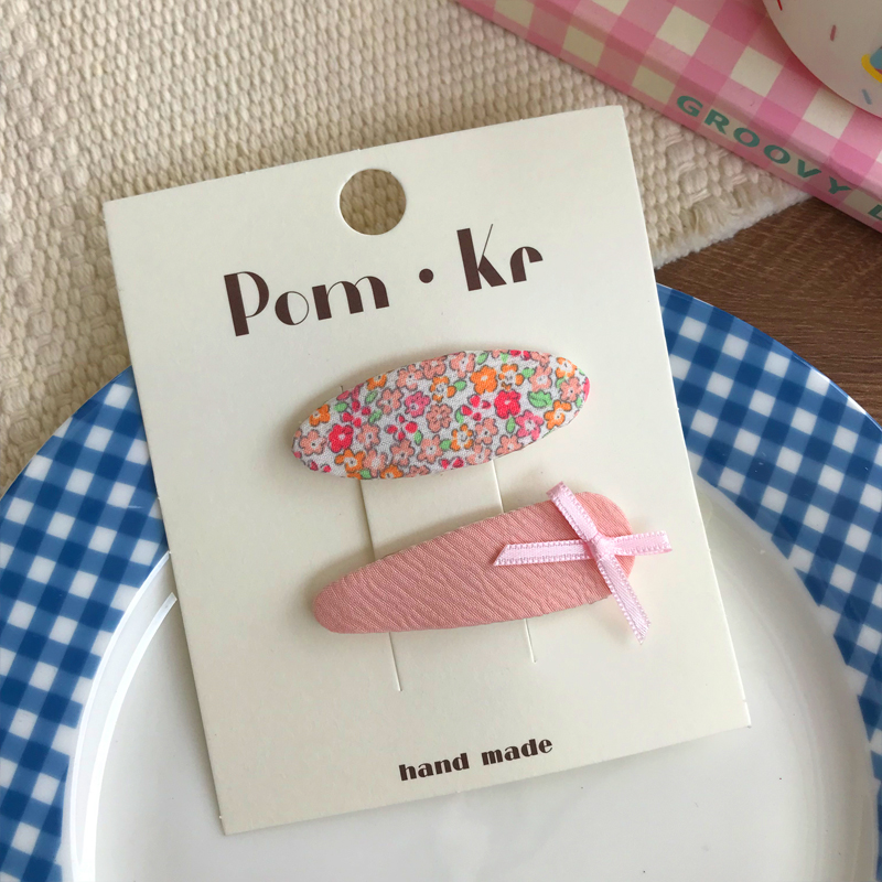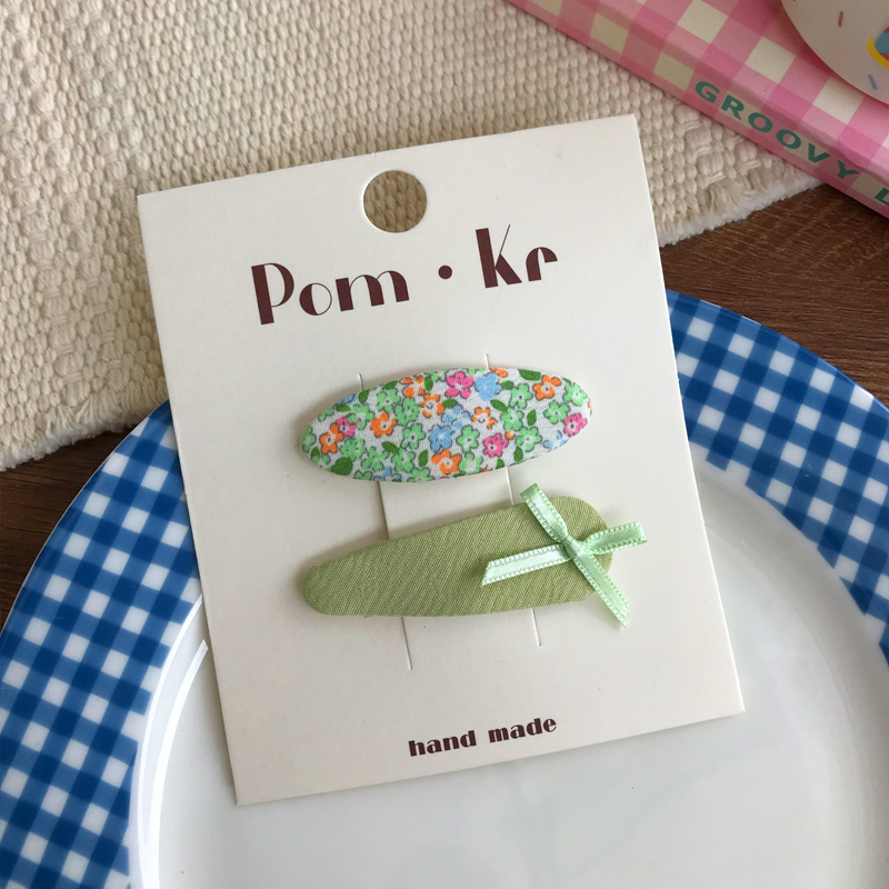 New oval fabric checkered bow print hair clips for children, fashionable and versatile side bangs hair clips and hair accessories