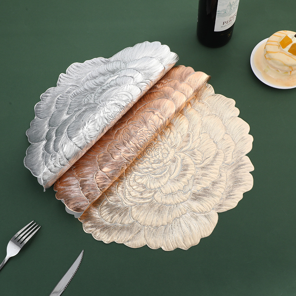New peony-flowered pvc heat-insulating placemats, Nordic-style decorative gilded home placemats, waterproof table MATS for hotels and restaurants