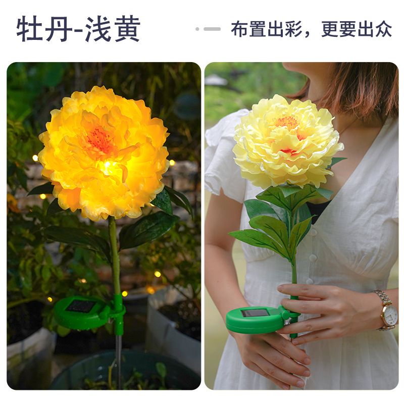 New peony simulation lanterns, outdoor waterproof solar lanterns, garden lawn lighting and decoration, peony ground insert lamps