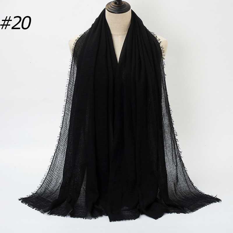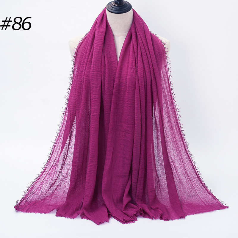 New pleated single-color cotton solid color scarf with natural pleated human cotton and wool brim large-sized women's headscarf BS414