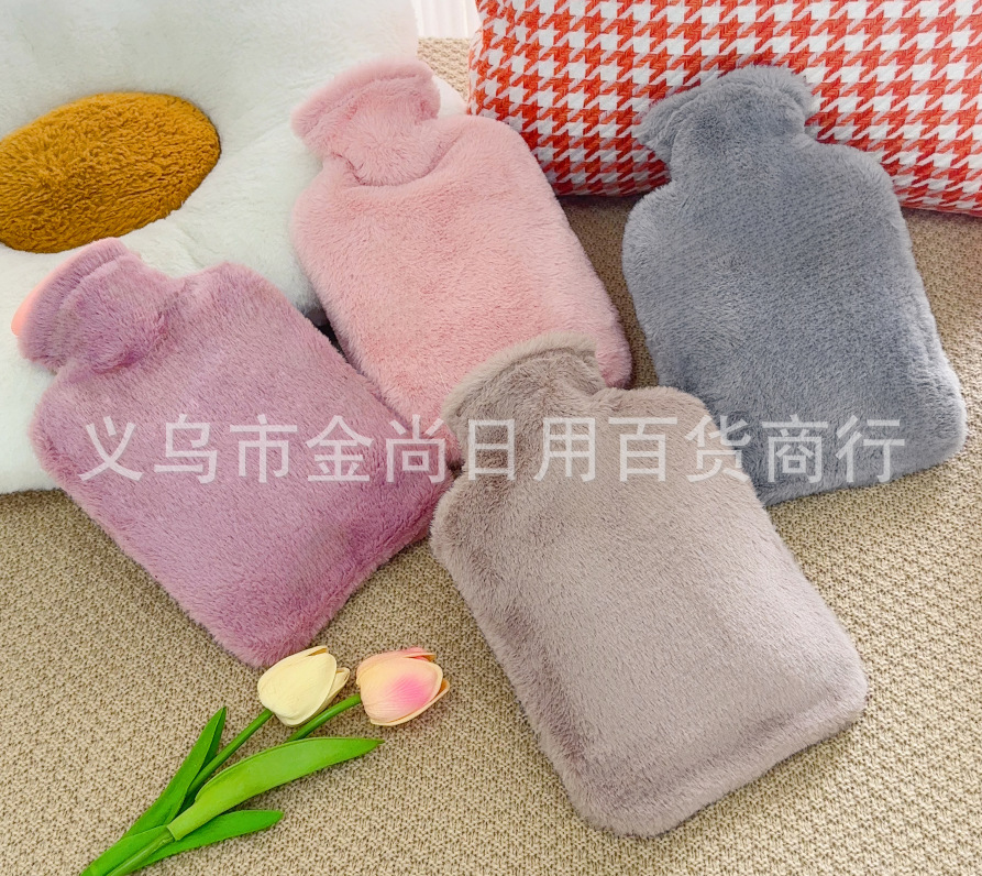 New plush solid color water-filled hot water bag, thickened explosion-proof hand warmer, girls' hot compress stomach warmer, foot warmer handbag