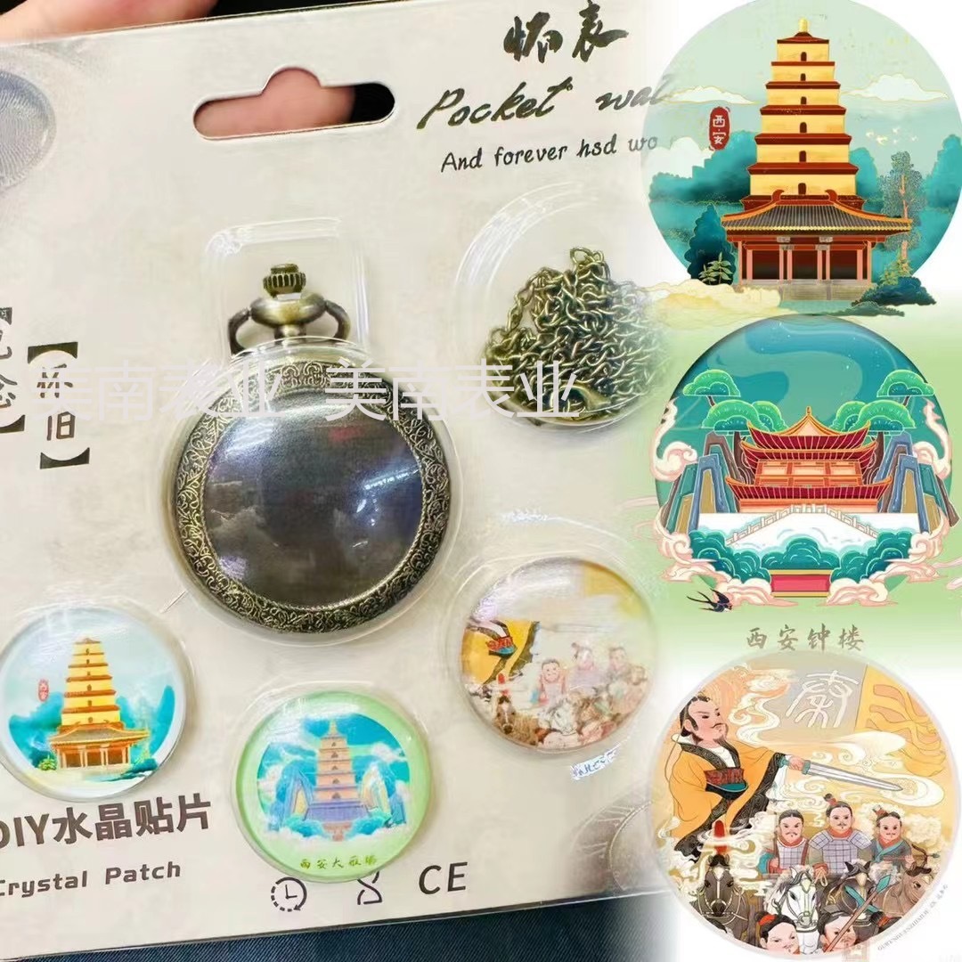 New pocket watch, classic travel commemorative city landmark chain hanging watch, Kawaii diy flip cover creative watch