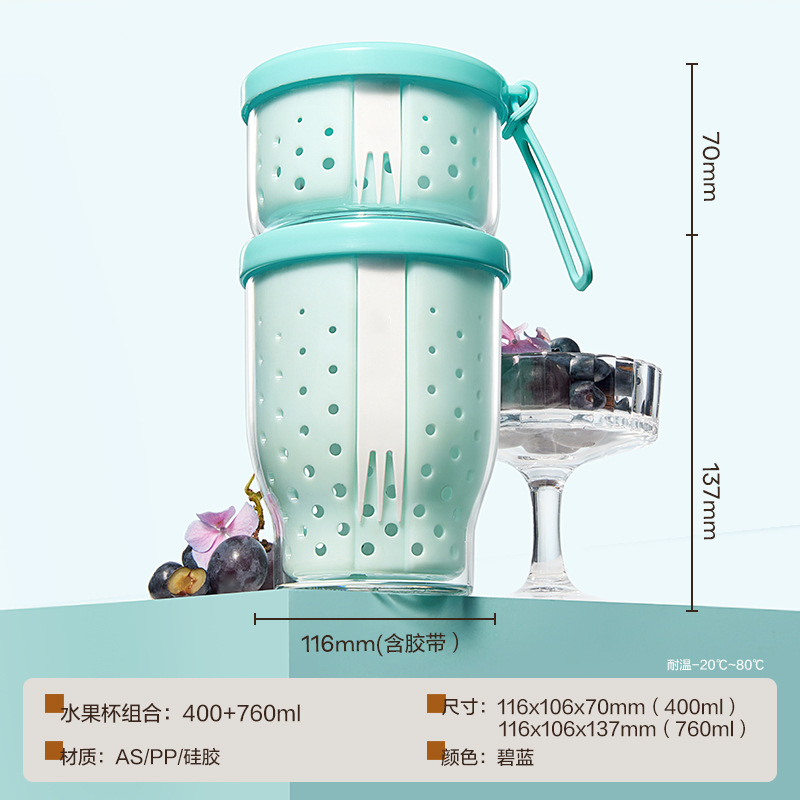 New portable double-layer fruit cup with fork, large capacity, water-draining, sealed and leak-proof, picnic preservation salad fruit cup, 500ml-800ml