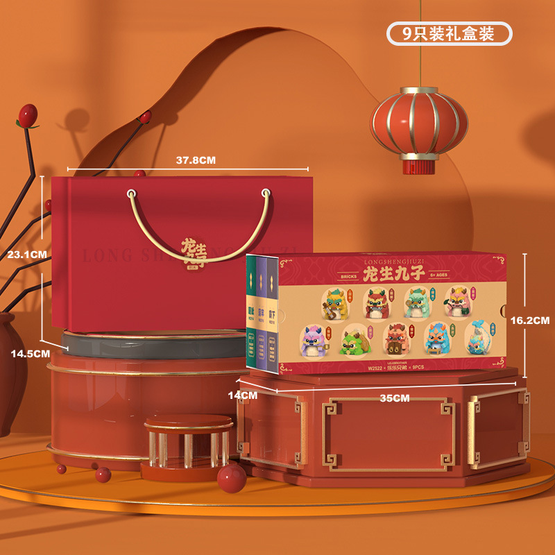 New product 2024 National Trend Dragon Year building Blocks, Dragon Birth Nine Sons, Boys and Girls, small particle children's assembly toys, gifts, national trend