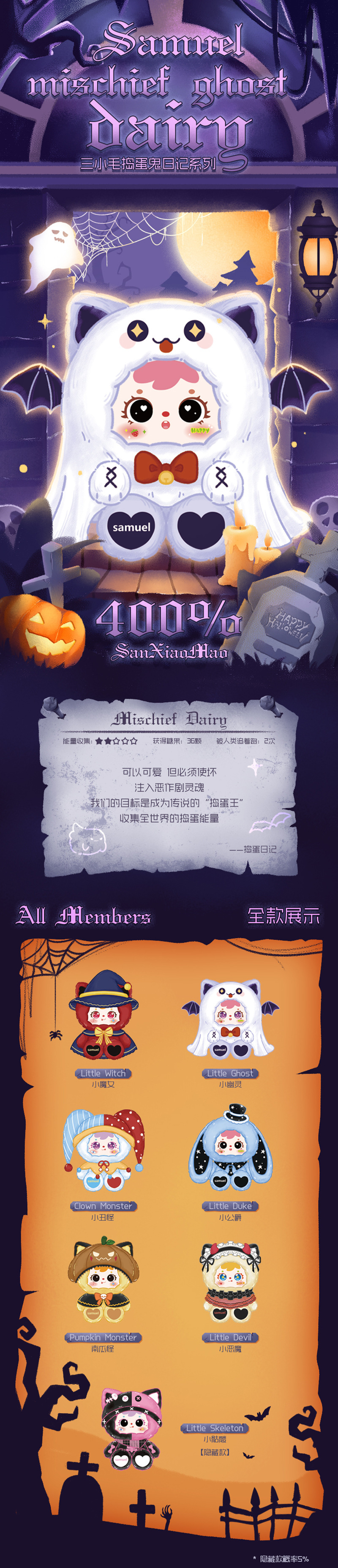 【 New Product Hot Sale 】 Samuel's Halloween Stuffed Troublemaker Diary Plush Blind box Live stream