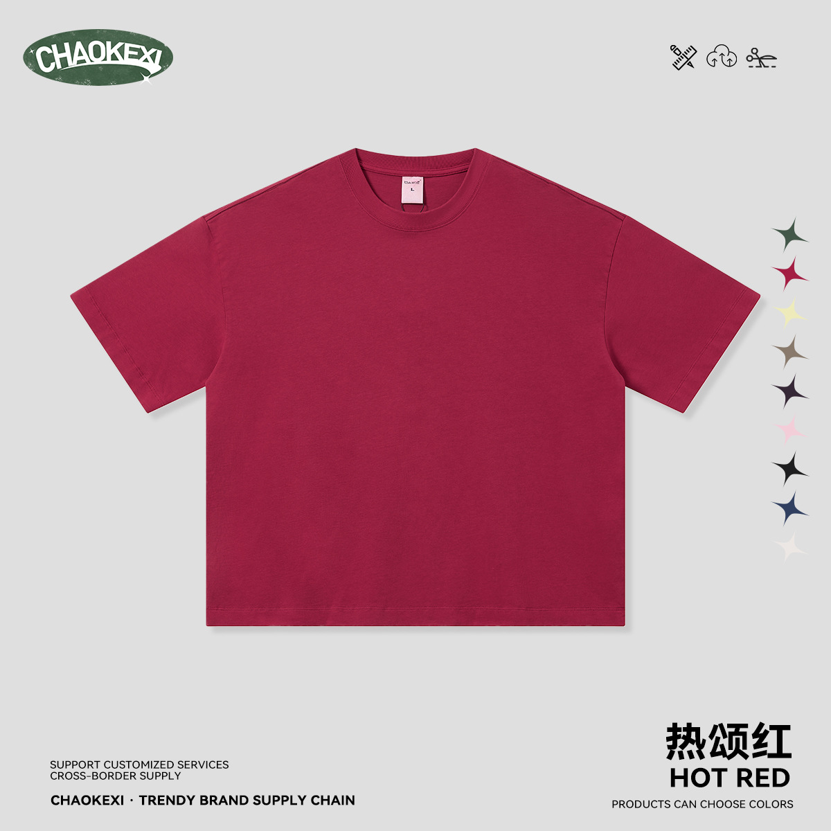 New pure cotton American-style solid-color youth T-shirt for men, 280g washed and aged trendy short-sleeved top custom-made