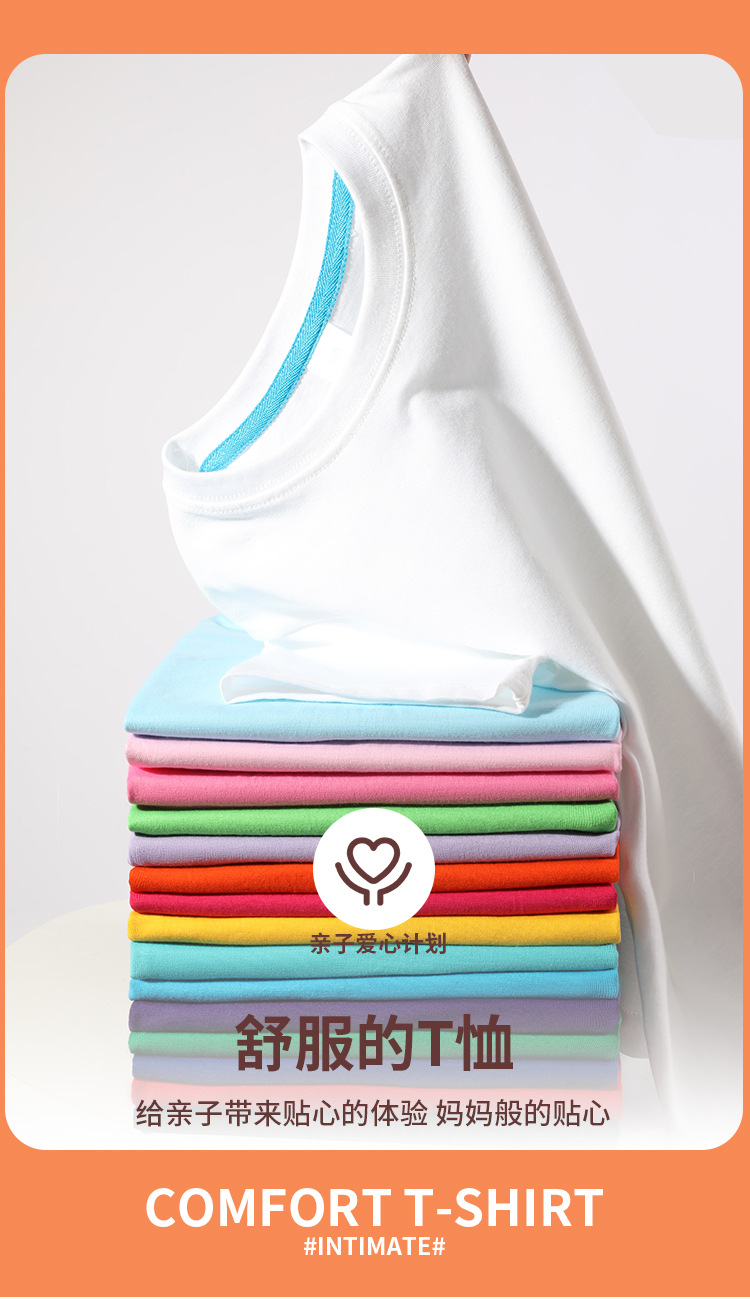 New pure cotton family and children's short-sleeved T-shirts for summer, breathable and fashionable for both boys and girls, available for wholesale