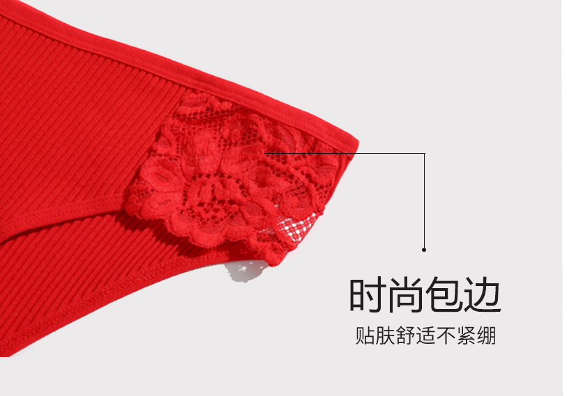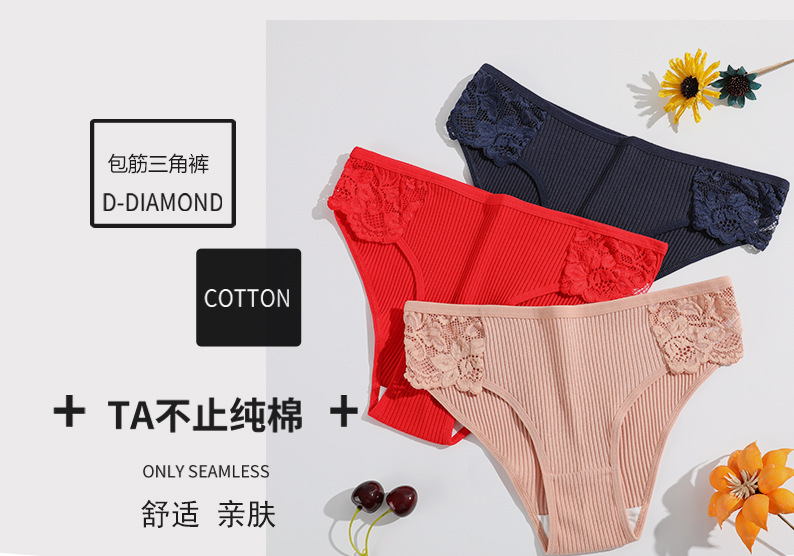 New pure cotton threaded women's briefs, solid color low-waist lace breathable double-layer underwear for girls, direct supply from the manufacturer
