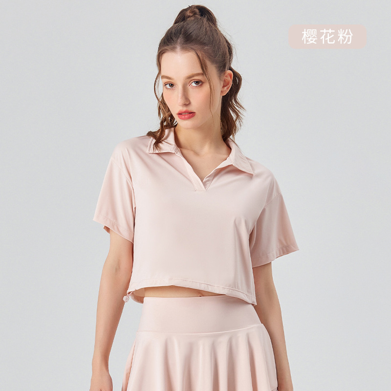 New Pure Desire style yoga fitness short-sleeved T-shirt for women, casual sports high-neck fitness wear, sun-protective quick-drying top