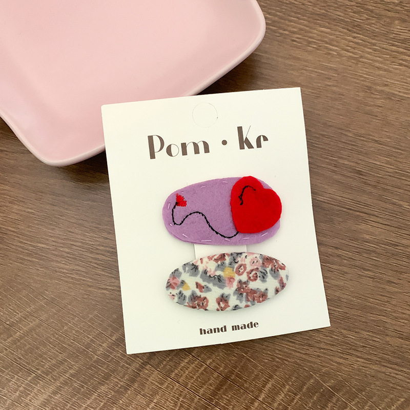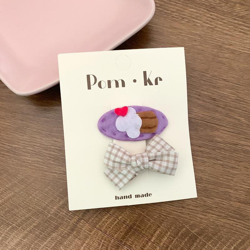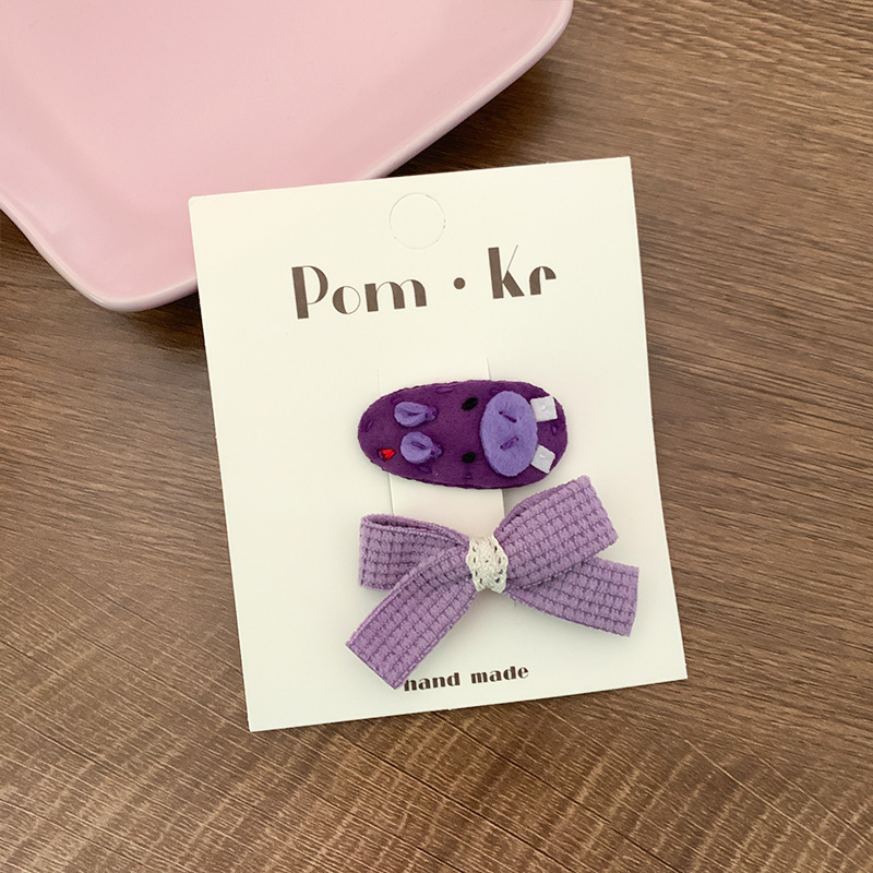 New purple cartoon animal bb clip pair, baby hairpin fabric embroidery bow, broken hairpin side clip