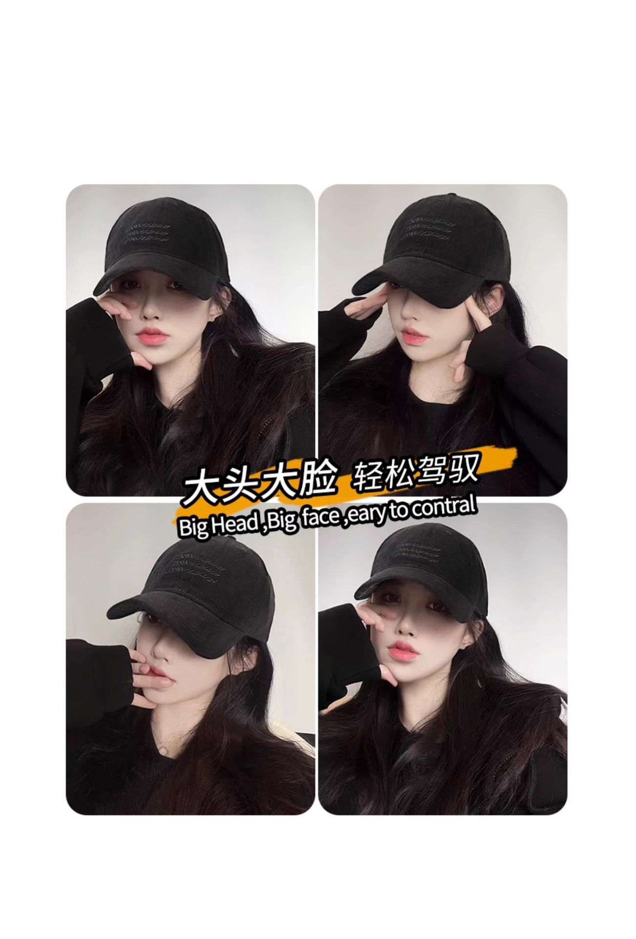 New retro washed brushed sun protection baseball cap for women, Korean style versatile large-head cap for women's fashion