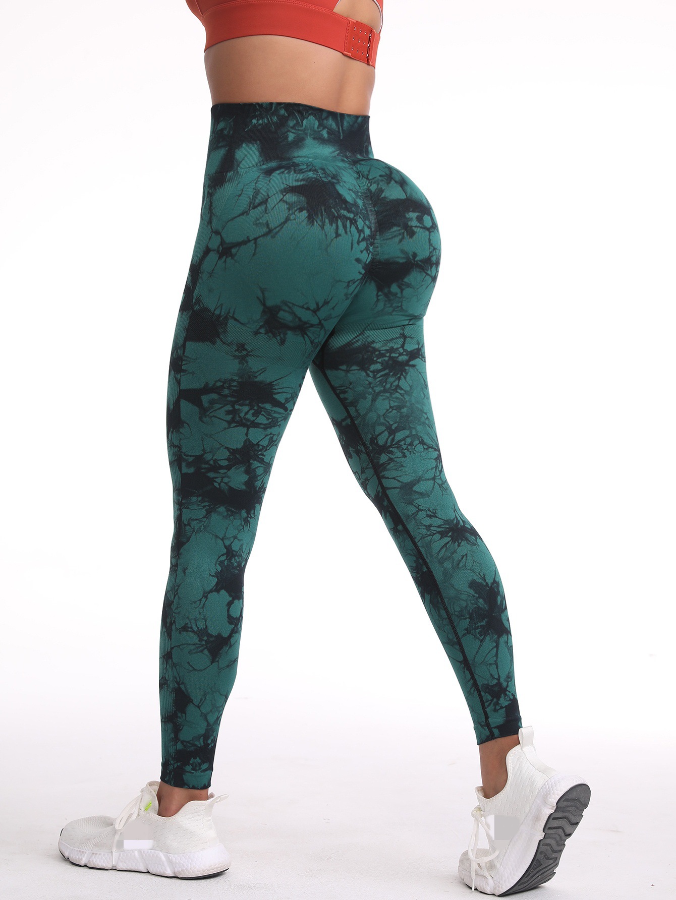 New seamless tie-dyed peach-lifting tight-fitting sports trousers from Europe and America, high-elastic, high-waisted, belt-tightening running, fitness and yoga stockings, high-quality, comfortable and breathable