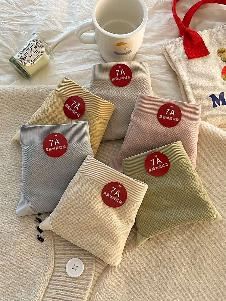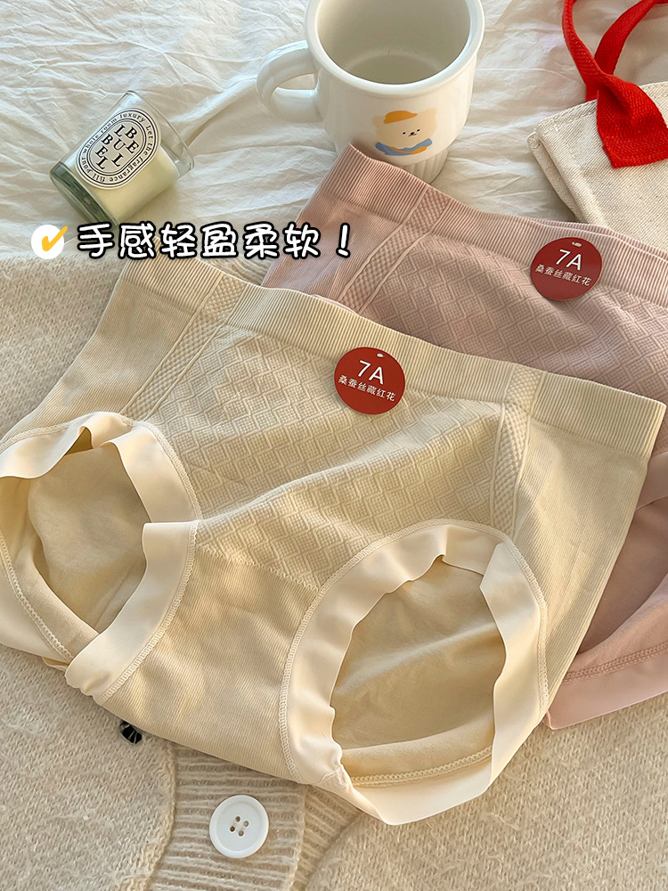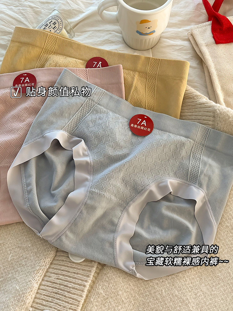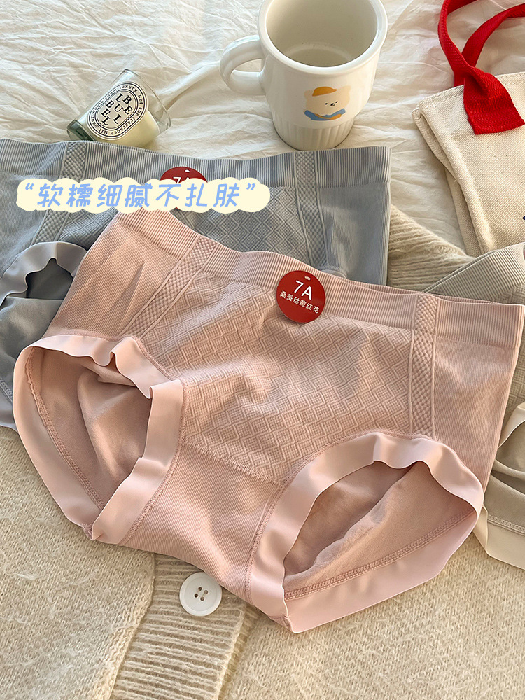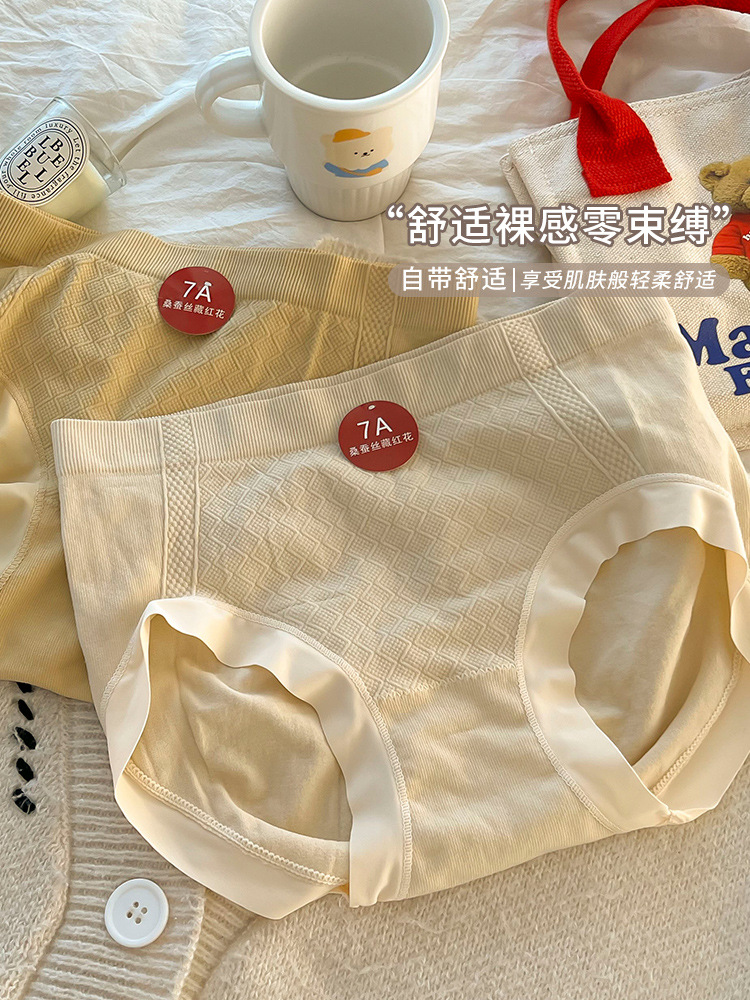 New seamless women's underpants made of mulberry silk, breathable mid-waist, hip-lifting and anti-glare triangle pants, seamless women's abdominal cinching