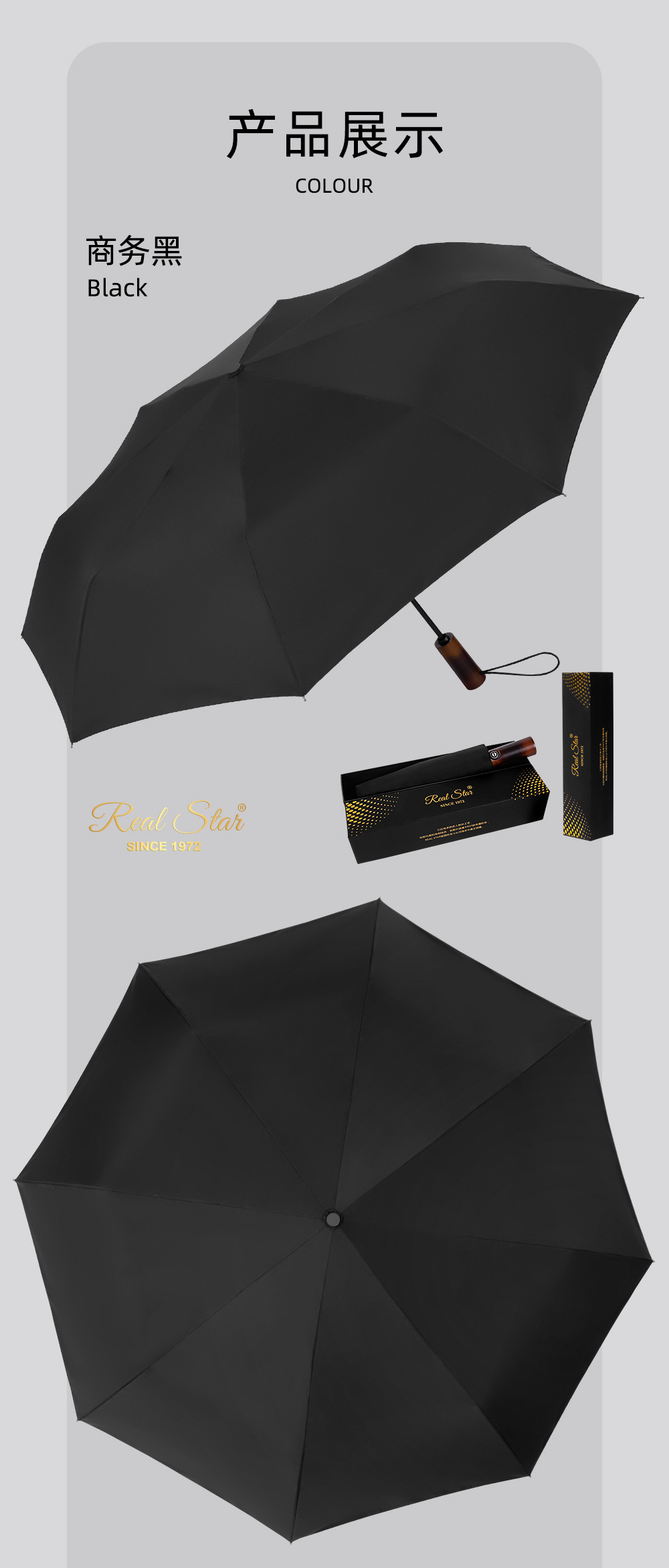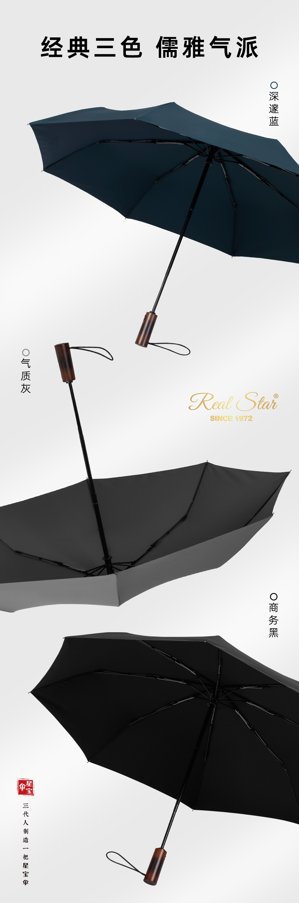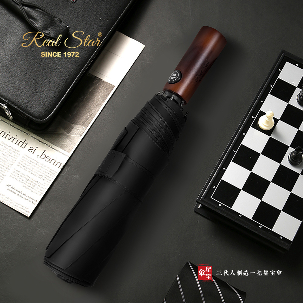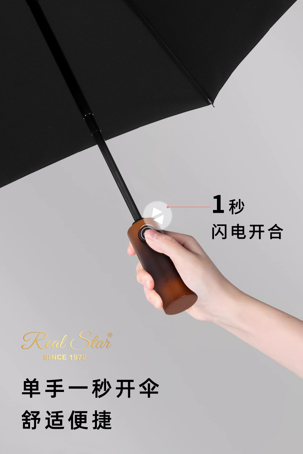 New self-opening and closing solid wood handle business umbrella, thickened 280T impact-resistant fabric waterproof canopy, British gentleman's umbrella