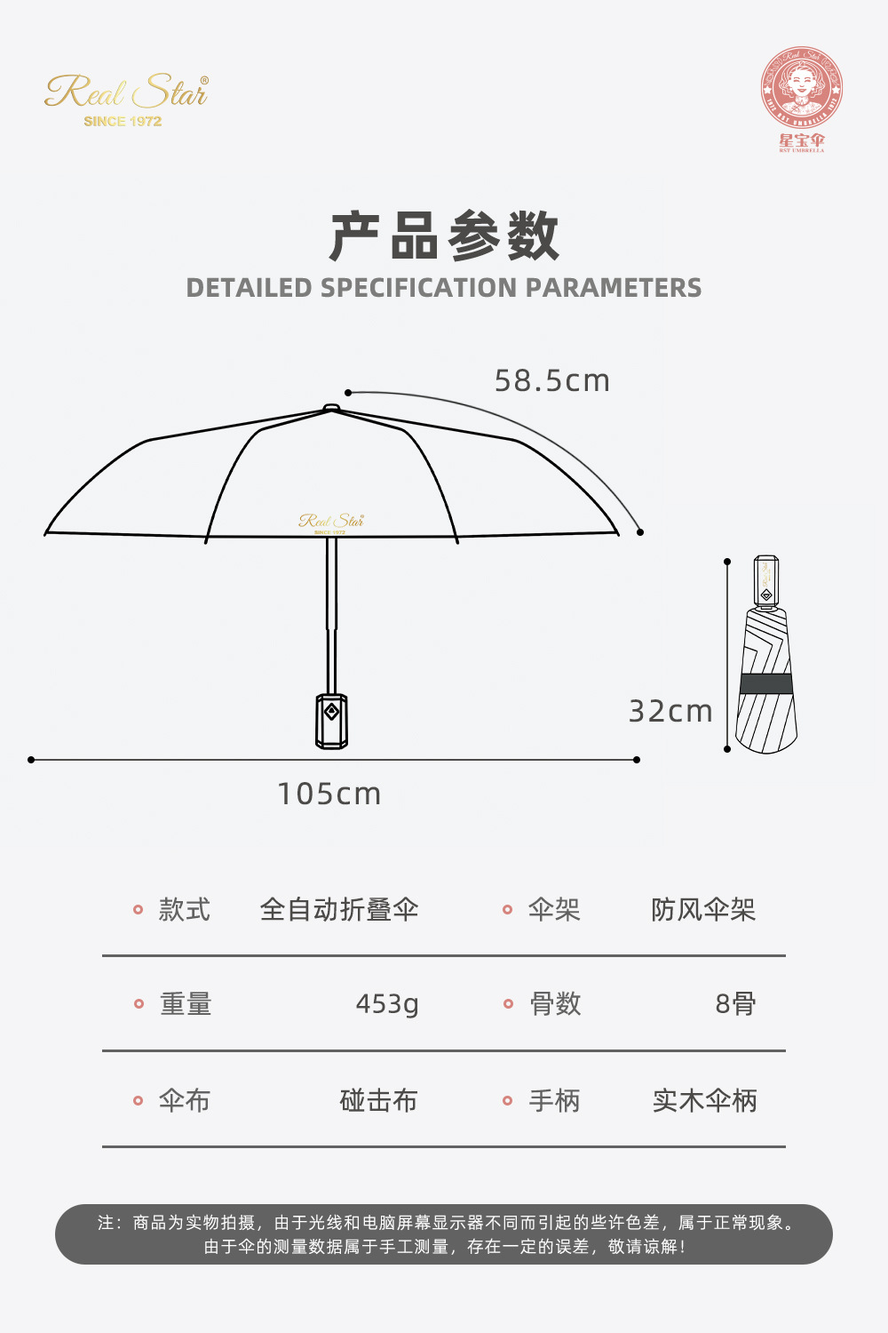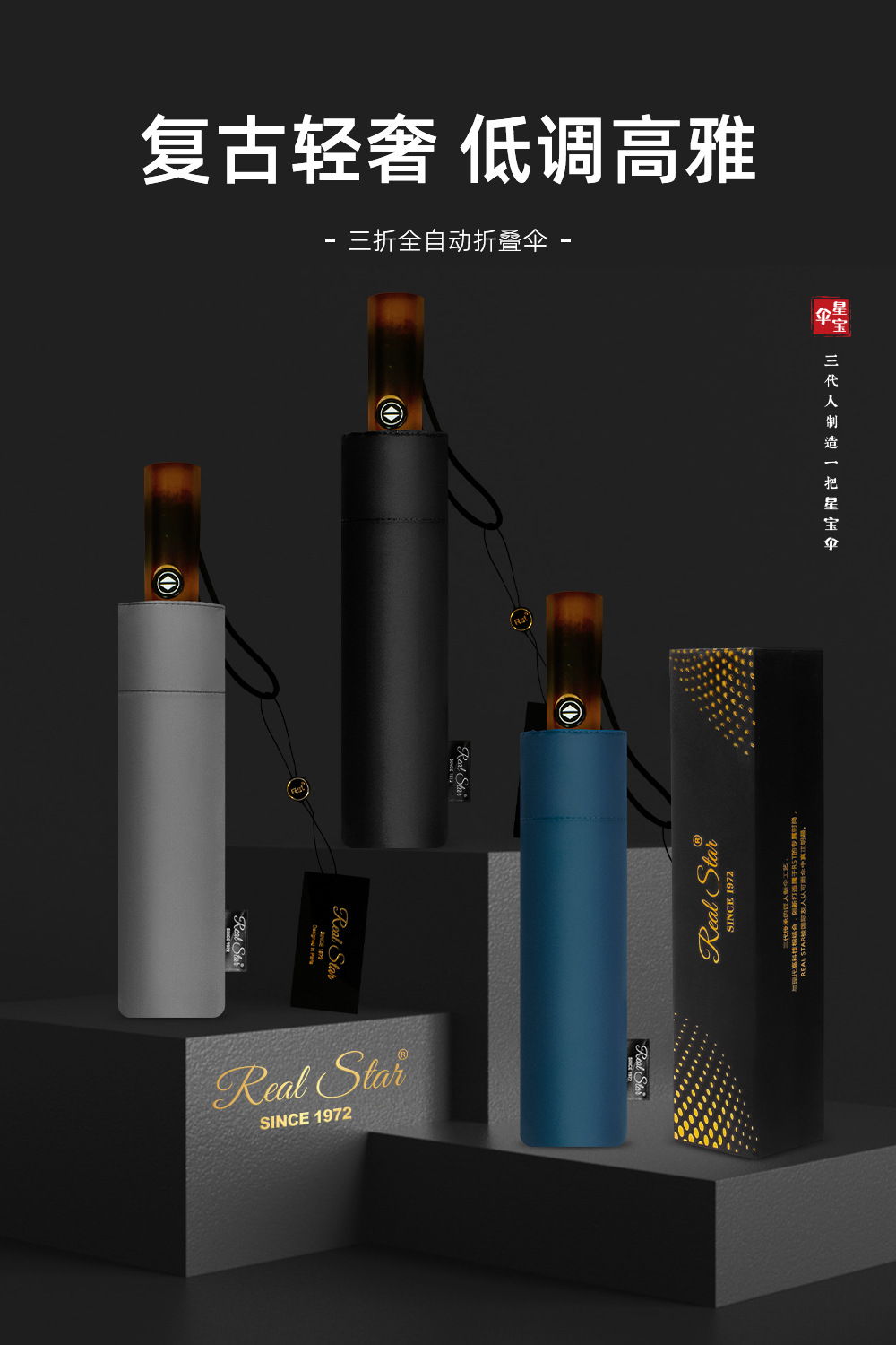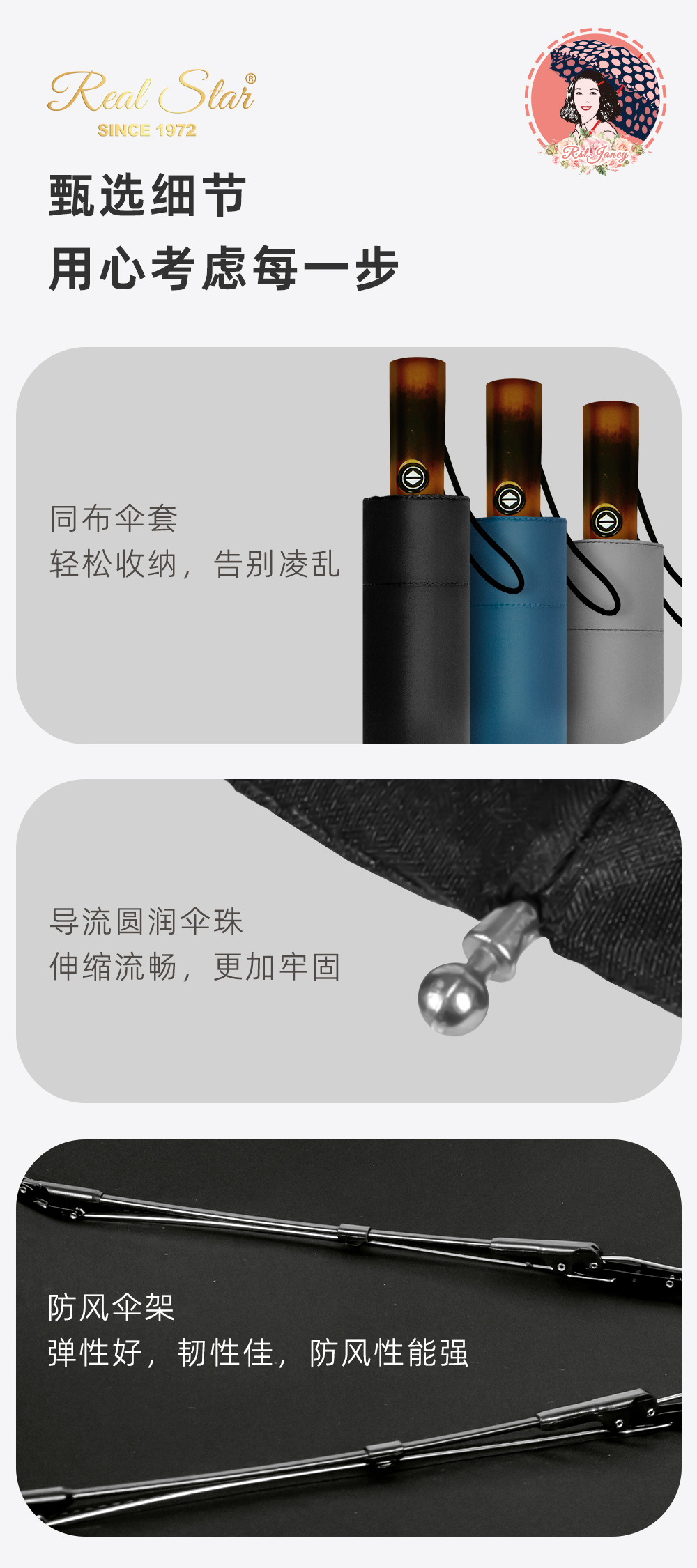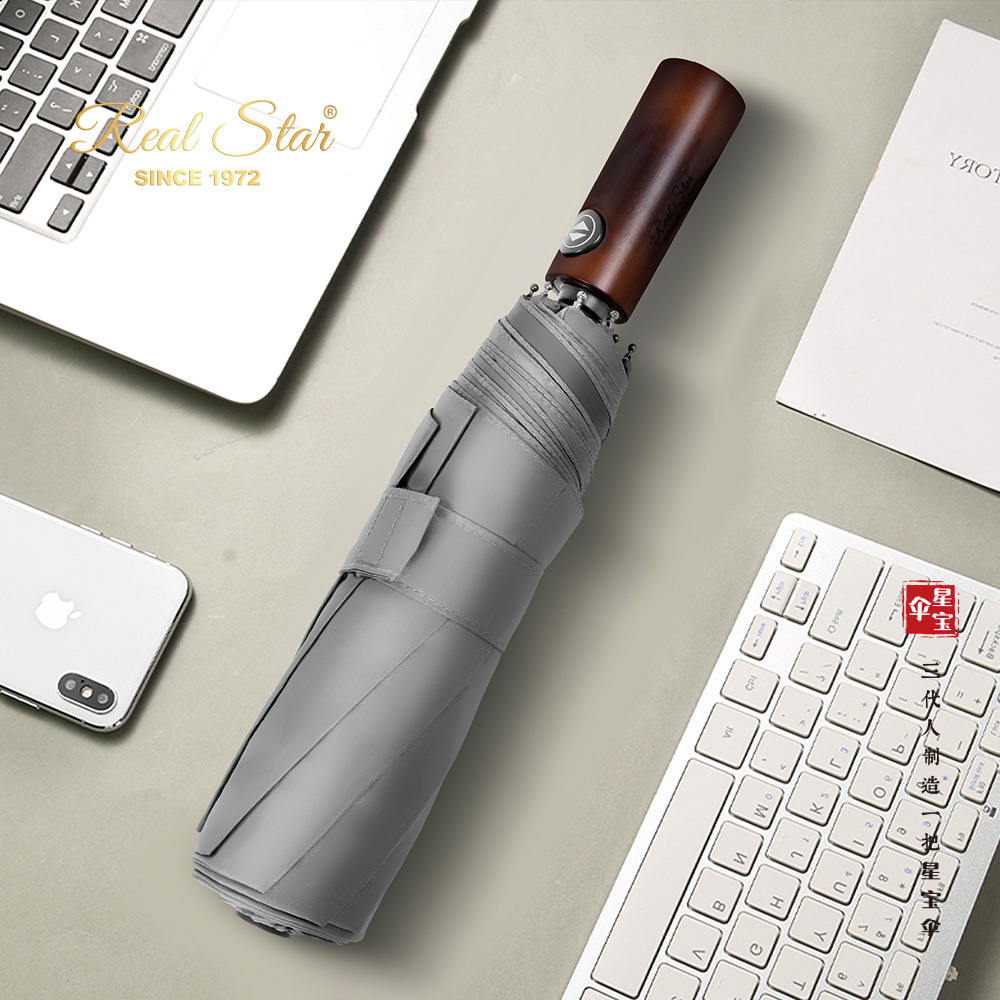 New self-opening and closing solid wood handle business umbrella, thickened 280T impact-resistant fabric waterproof canopy, British gentleman's umbrella