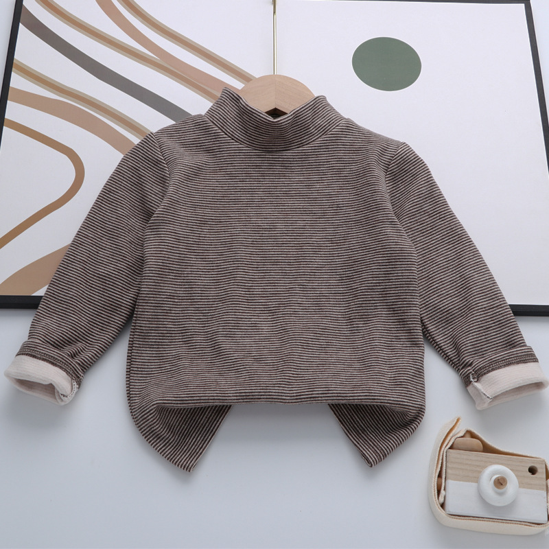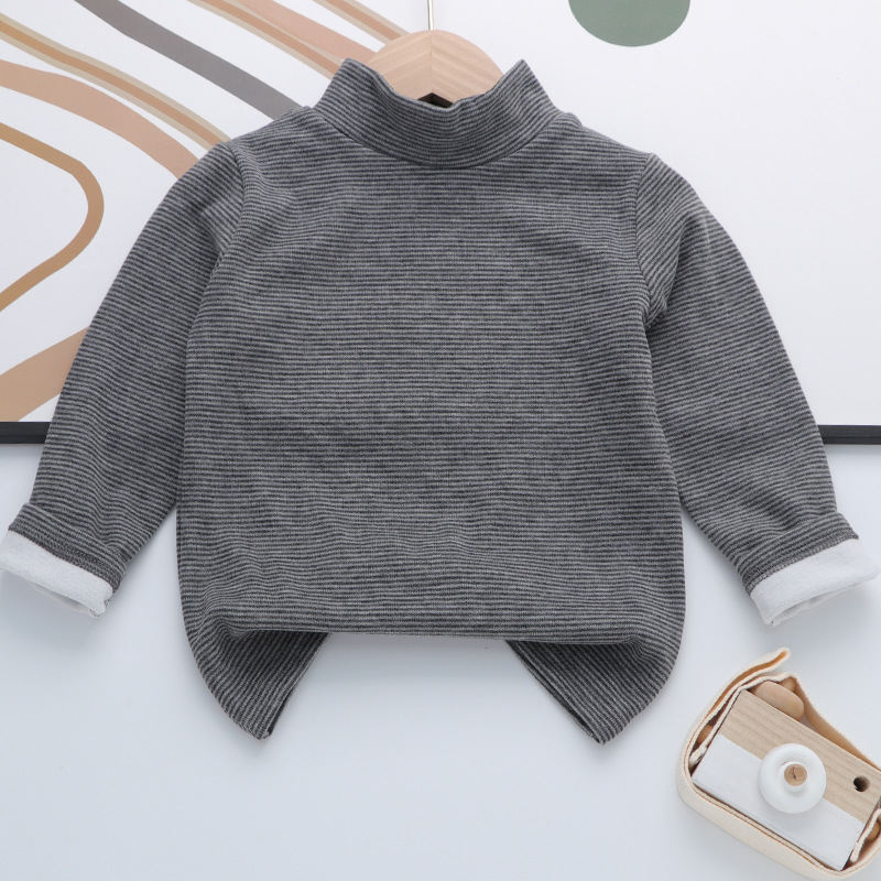 New semi-high-neck warm inner tops for boys and girls, children's autumn wear, baby T-shirts, and long-sleeved base shirts for boys