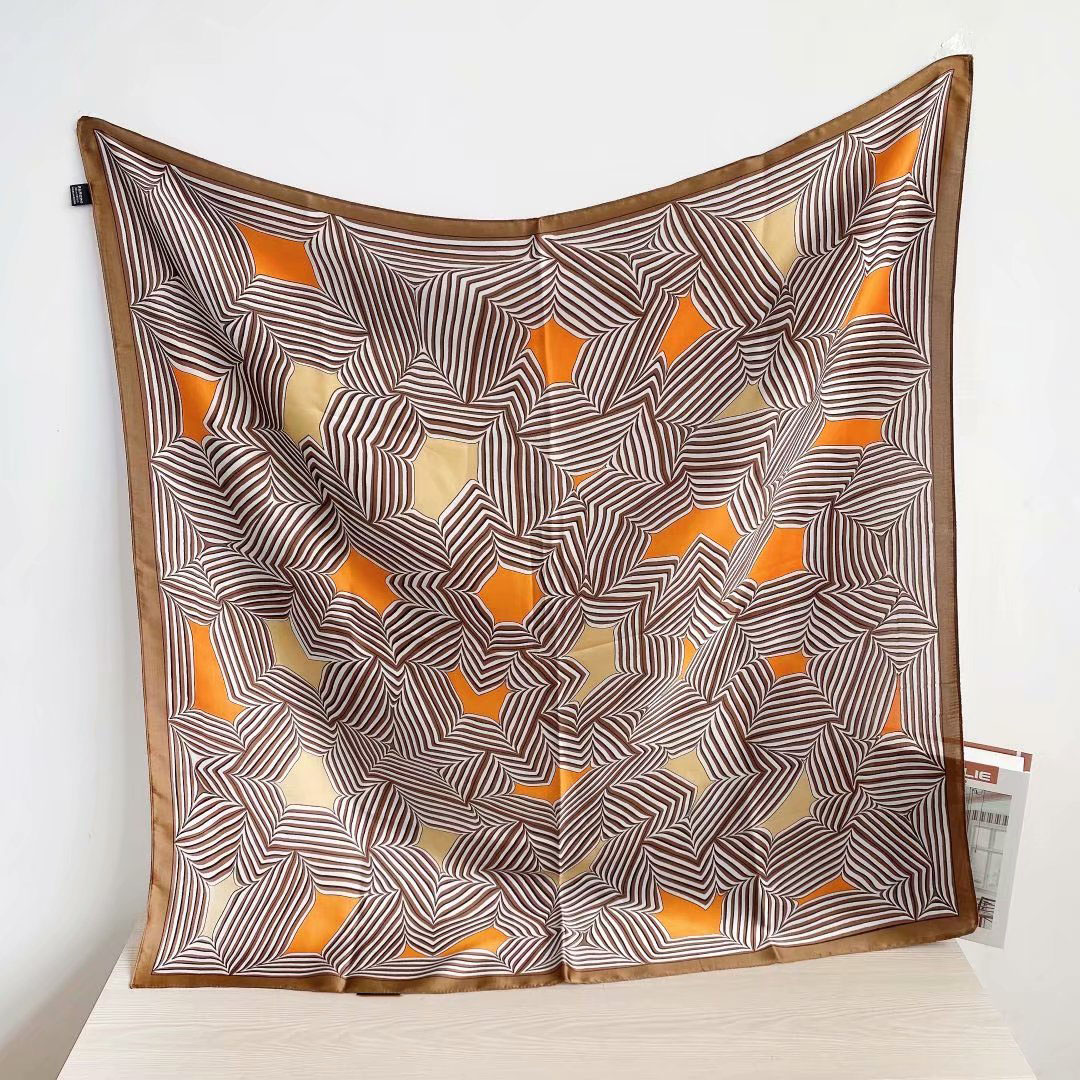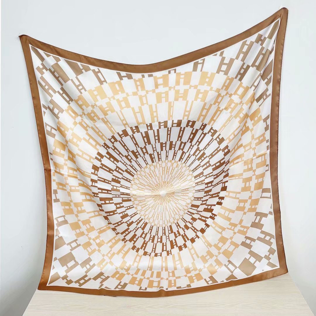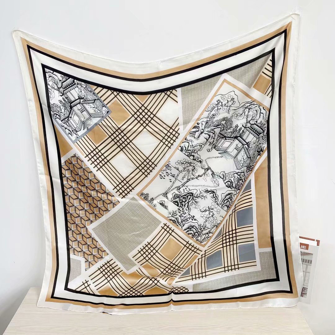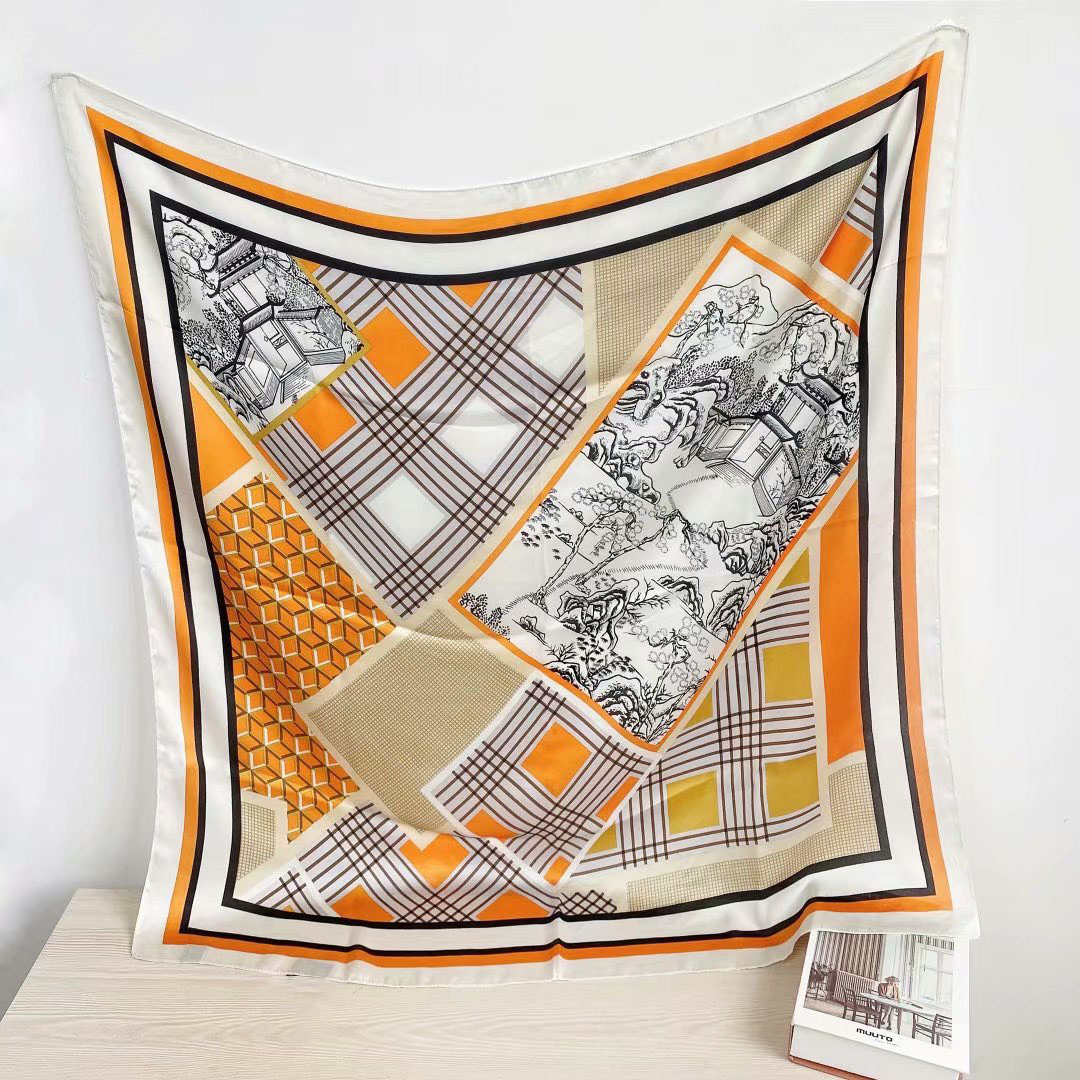 New silk satin 90*90 imitation silk European and American street large square scarf with simple letter stripes is available for export